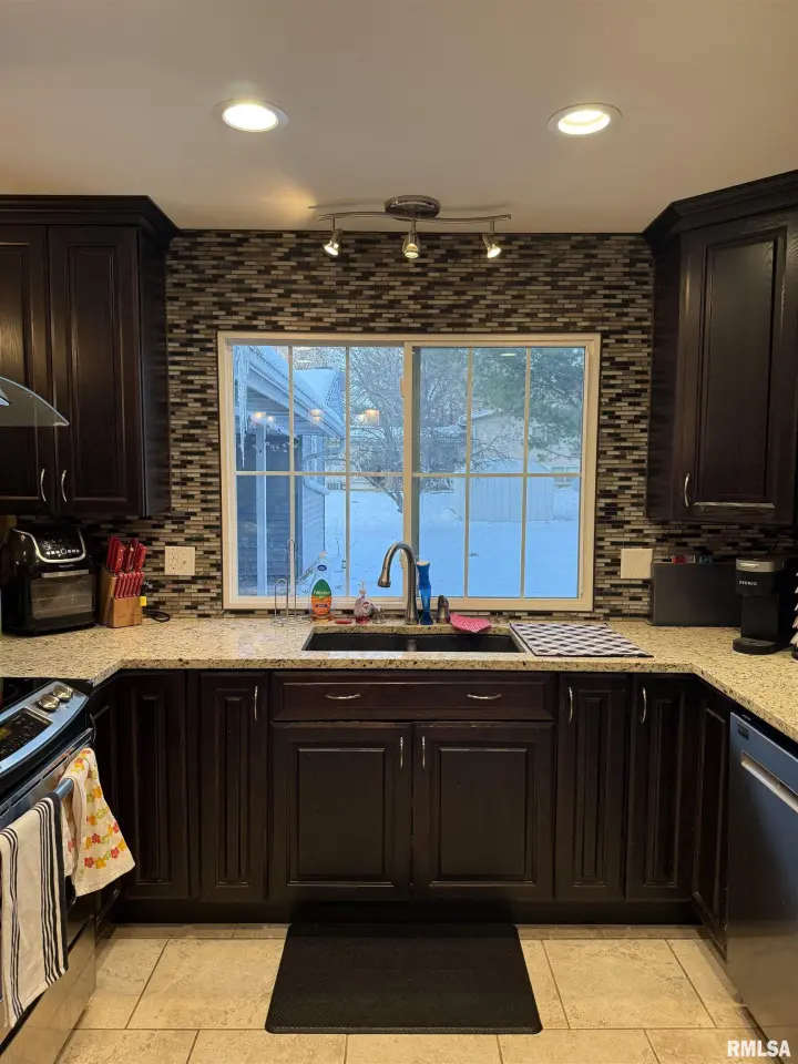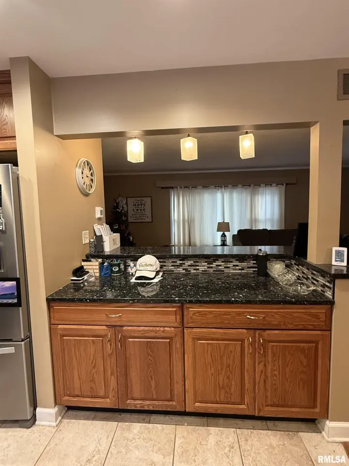 The inviting kitchen stands out with its gorgeous dark wood cabinetry, granite countertops, and two breakfast-bar seating areas - perfect for casual dining or gathering with guests. Hardwood floors flow throughout the living room and upper level of the home, the kitchen and hallways feature durable tile flooring for easy maintenance and the lower level has carpet to give a warmer vibe to the area. A detached garage sits just steps from the home, connected by a covered walkway that doubles as a cozy patio space to relax on quiet evenings. The generously sized backyard offers plenty of room for entertaining, gardening, or play. With thoughtful features inside and out, this home delivers comfort, functionality and lots of space to enjoy.