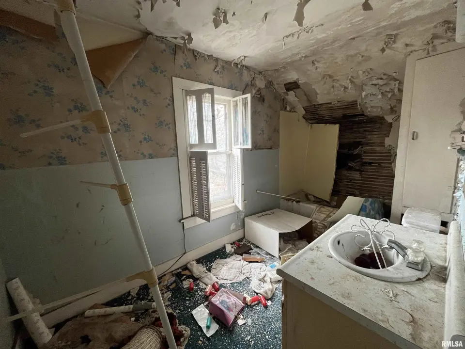 The house sits on an oversized lot and is sold as-is with all current contents. Main level features a bedroom with a private half bath, Living room, kitchen, formal dining room and a small enclosed back porch. Upper level includes two bedrooms and a full bath. Great project for serious investors or renovators.