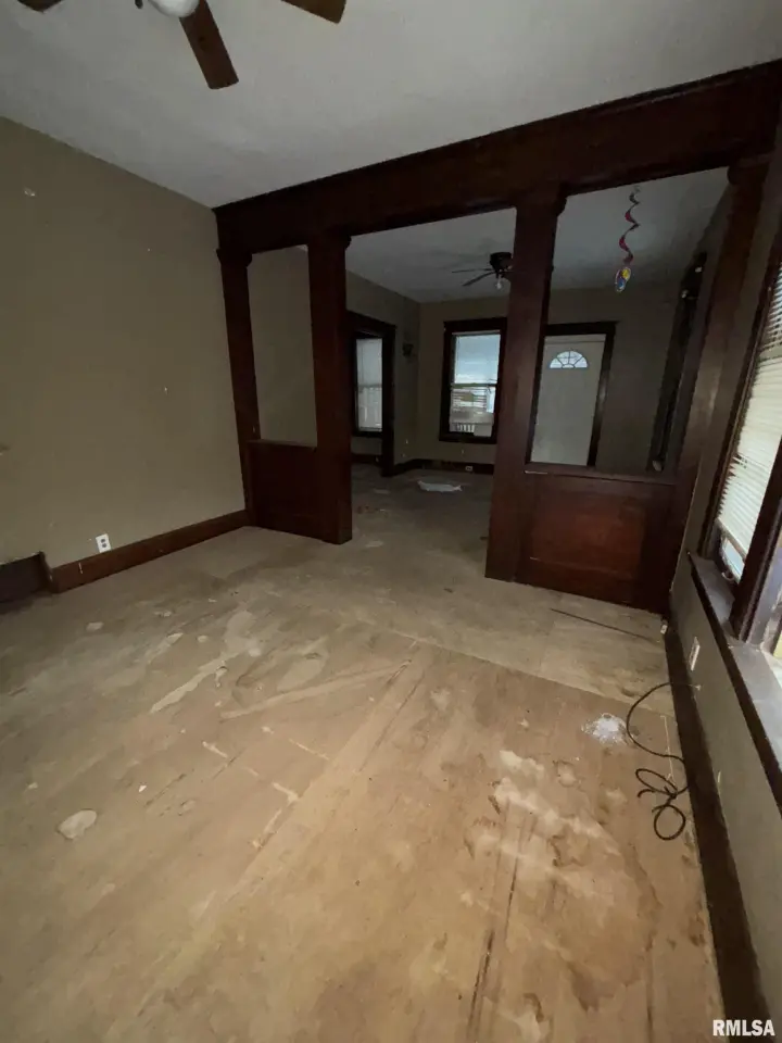 This 2-bedroom, 1-bath home features attractive interior woodwork, subfloors ready for new flooring, and needs new electrical wiring. The second bedroom currently opens to the living room and can easily be enclosed with a butterfly door. The dry basement offers approximately 800 sq ft of space, ideal for storage, a workshop, or finishing to expand livable area. Adding an egress window could allow for a third bedroom. Note: the home does not currently have a furnace. Outside, enjoy a private backyard with a chain-link fence, dedicated parking with alley access, and a spacious front porch. Bring your best offers, Cash offers preferred!