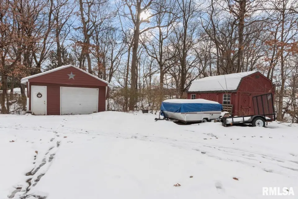 French doors lead into informal dining room with gorgeous view of the private, wooded lot. Primary bedroom includes a separate dressing area. Additional detached garage and large shed are great for extra storage options! New HVAC in 2017, bath remodel in 2019, flooring updates in 2019 and new water heater in 2022! This gem won’t last long! Schedule your showing now!
