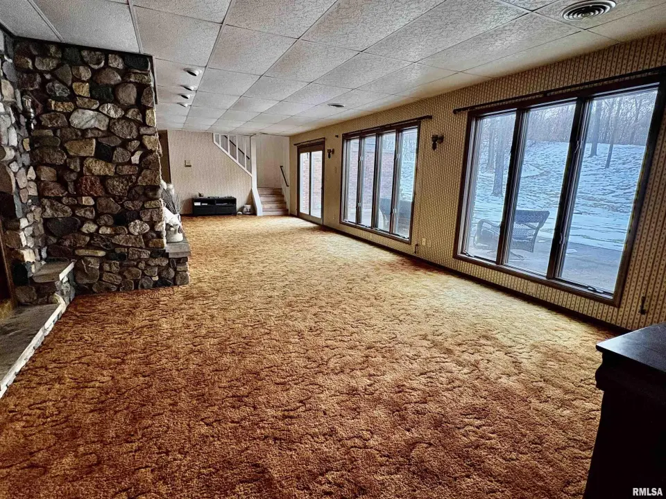 finished living space home including the walkout basement has so much to offer.4 bedrooms for now with 4 and 1 half bathrooms. This property sets on 5 acres that sets up against Putnam County Conservation Area. Your options are endless with the extra basement access off the garage entry. The owner ran a dog grooming salon with an extra laundry room. That washer/dryer is as-is with needing a bit more finishing touches to make operable. The 3 season room off the informal dining area allows so many views of wildlife. Or walkout to a patio from your huge Great room with fireplace in the basement. Or walkout your spa room to a sun deck on lower level of the home. The spa tub is as-is! The seals on the pump skit were cracked and leaking when tried last. It will need some TLC. There have been many updates to this huge home to list a few(New roof 2023,1 new furnace 2025,New concrete driveway, remodeling of Master bedroom and bath, living room and dark room. All the appliances are staying and pool table in basement rec. room and are as-is! You pick where you want your office to be from a room in the basement to a nook on upper level balcony. The 4th bedroom does not have an egress