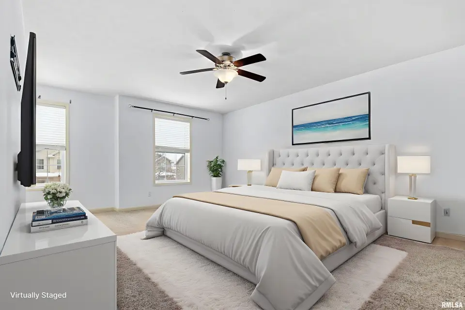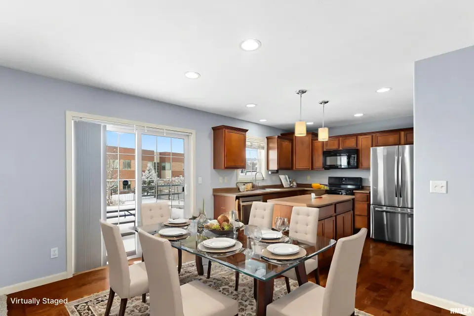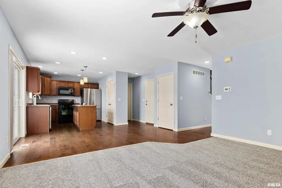 The great room, kitchen, and versatile flex room flow seamlessly together, perfect for everyday living, working from home, or hosting family and friends. The kitchen offers black and stainless steel appliances, wood cabinetry and a functional island that provides additional workspace and seating. Upstairs, the primary bedroom features its own private bathroom and a spacious closet. The additional two bedrooms both offer generous closet space and the laundry conveniently located in the upper floor providing comfort and convenience for the whole household. The finished basement extends your living area with a recreation room and an additional flex room that can serve as a home office, workout space, or potential fourth bedroom. Outside, enjoy a backyard with a nicely fenced garden, ideal for relaxation, gardening, or outdoor entertaining. Move-in ready and thoughtfully maintained, this home blends comfort, flexibility, and functionality in a wonderful location. 14M Standard Home Warranty. Updates include newly installed carpet, fresh paint, new dishwasher in '25, Refrigerator & Water Heater in '24, Water Softener '22, Washer & Dryer '20.