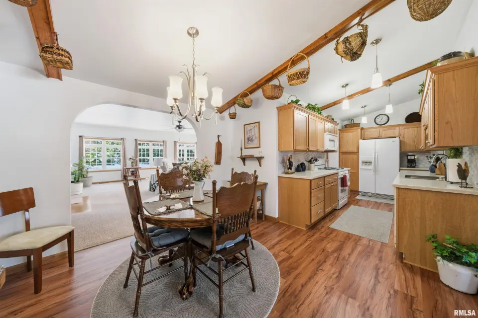 Spacious living room with easy to maintain vinyl plank flooring. Gorgeous galley kitchen features glass tile backsplash, soft close cabinets, and a pantry. Family room addition is the perfect place for hosting or entertaining. Outdoor amenities galore! Covered patio overlooks the private yard. 48x26 outbuilding has an office space and 2 car garage ideal for hobbies or just additional storage. Everything in this home has been updated including: furnace, roof, water heater, and even includes an RO system. Come see this home in person today!