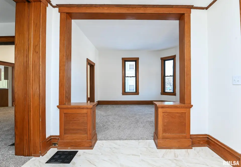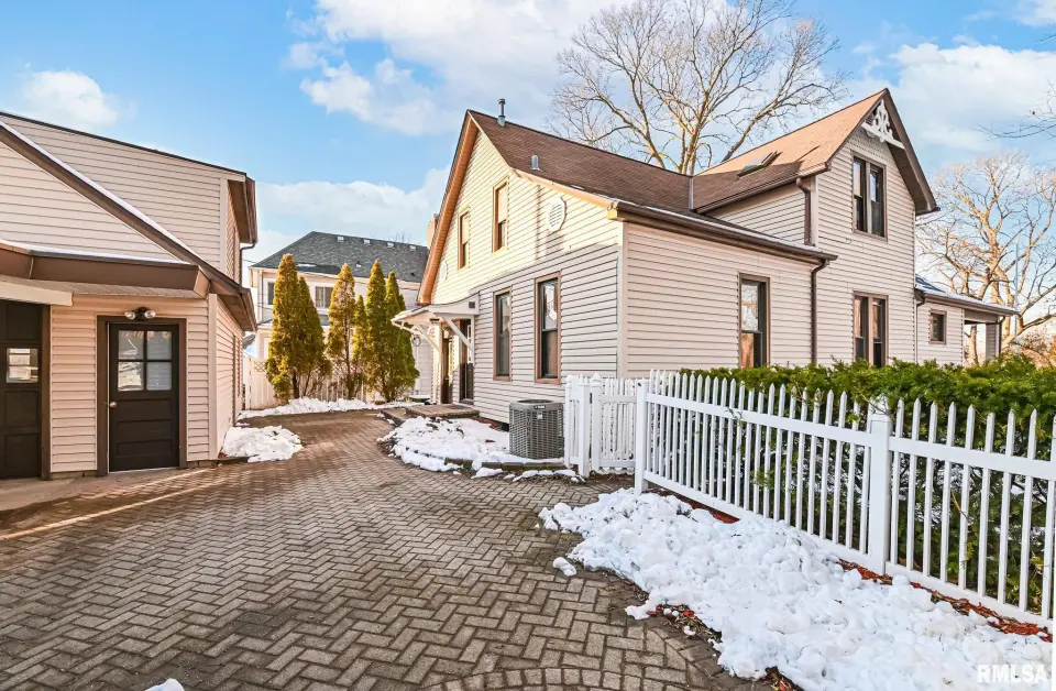 Original woodwork and timeless charm have been carefully preserved while thoughtfully updating what was needed. All wallpaper has been removed, walls professionally textured, and new flooring installed throughout both levels. The main floor features convenient laundry and a fully equipped kitchen with new stainless steel appliances. A spacious foyer welcomes you in from the large front porch, adding to the home’s inviting feel. Additional highlights include an island sink in the upstairs bathroom, a high-efficiency furnace, an updated electrical service panel, and a new water heater for the apartment above the garage. Outside, enjoy a large brick patio, a carport off the front of the garage, and a fully fenced yard. This home offers character, functionality, and space with so much more to appreciate. Possible Apartment above the garage with a separate entrance. Call your Realtor today to schedule a private showing!