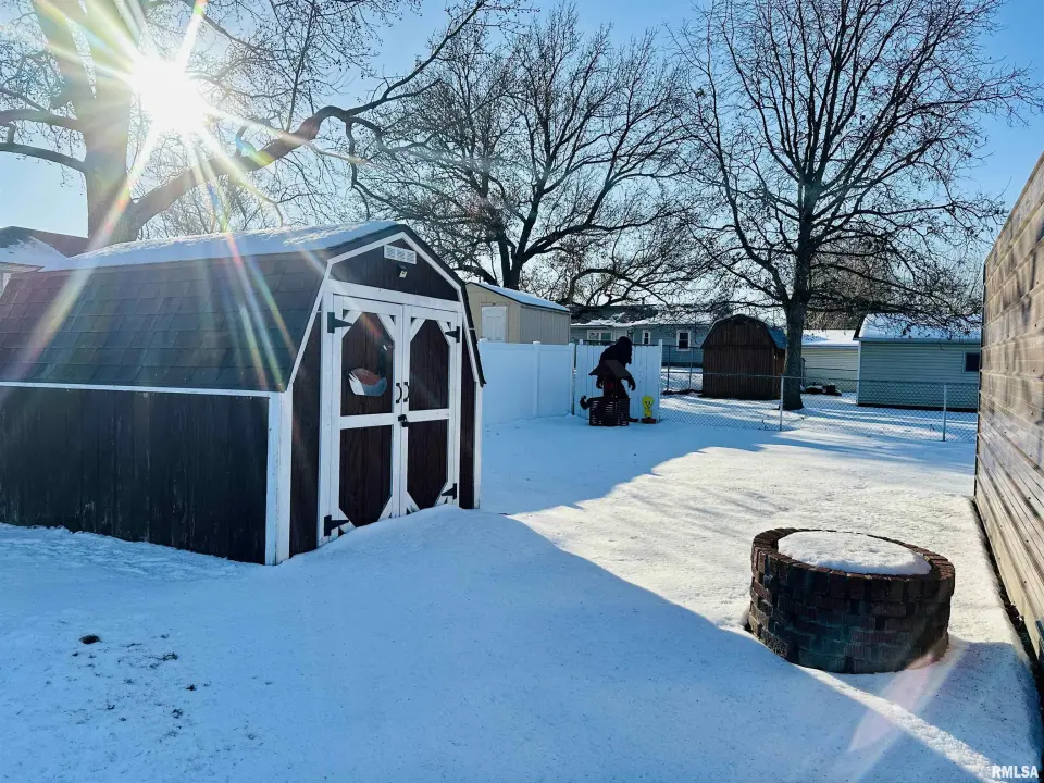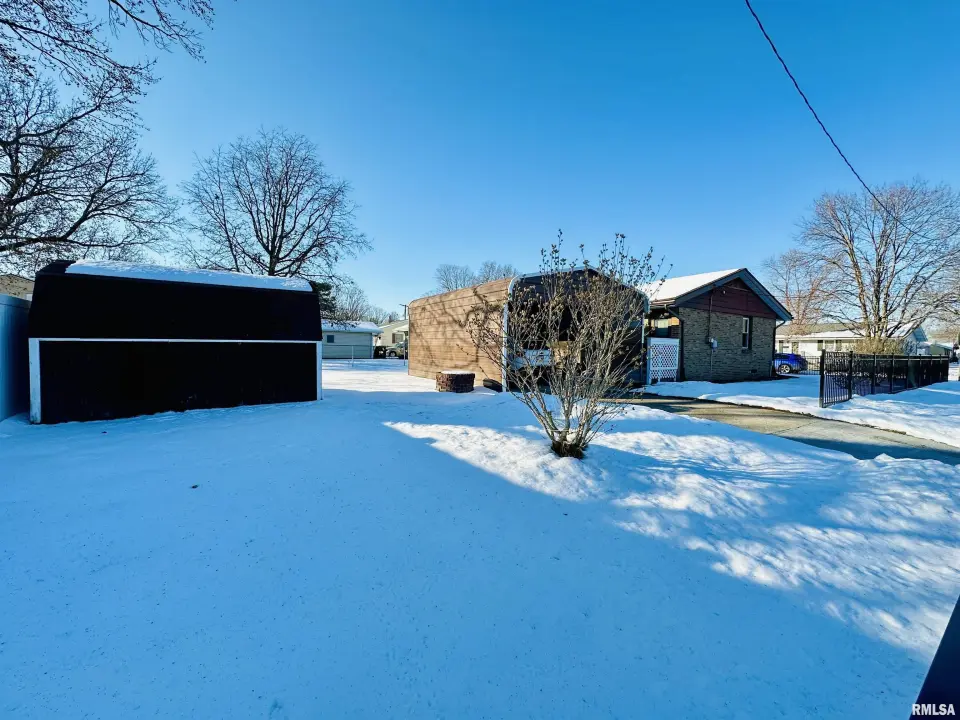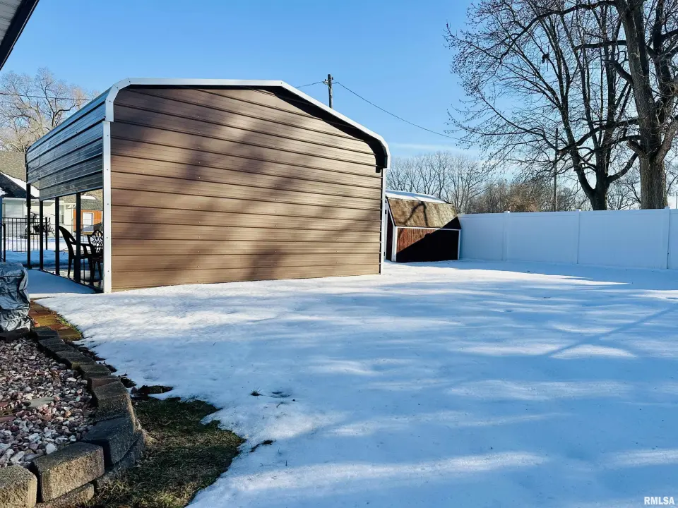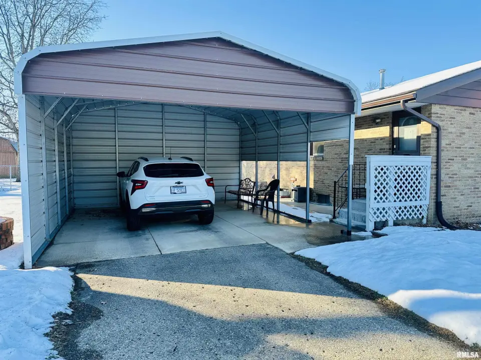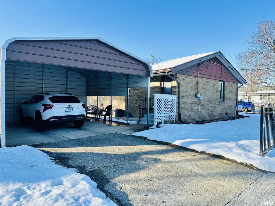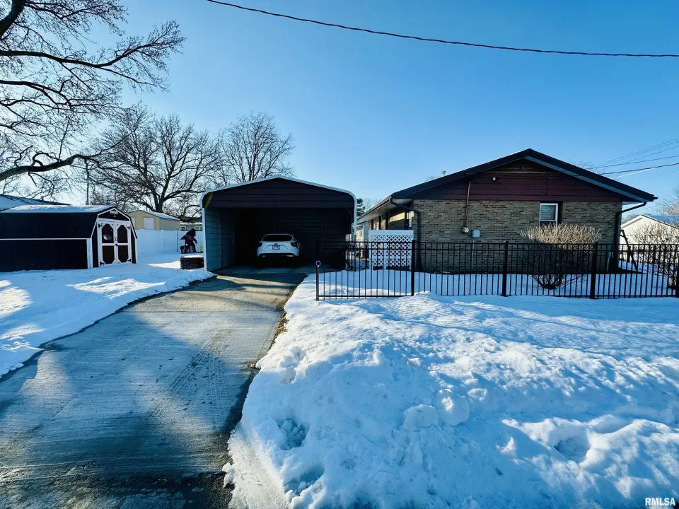The full basement includes a half bath and a spacious family room complete with a pool table, with the potential to create an additional bedroom or flex space. Situated on a corner lot with black steel fencing, this property boasts excellent curb appeal. The backyard is perfect for relaxing or entertaining, featuring a fire pit and storage shed. An 18x21 American Steel carport provides great vehicle coverage and offers the potential to be fully enclosed. Laundry is currently located on the main floor and occupies one bedroom but can easily be relocated back to the basement if desired. This home has seen numerous updates, including the roof, furnace (with yearly maintenance through Fritch Heating & Cooling), windows, doors, front and back porches, concrete driveway, gutters, soffits, electrical upgrades, and the addition of a basement half bath, plus much more. Don’t miss the opportunity to make this well-cared-for home yours in the new year!