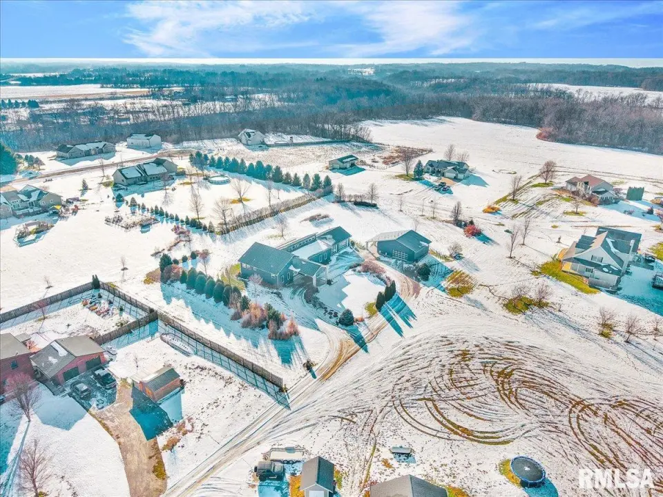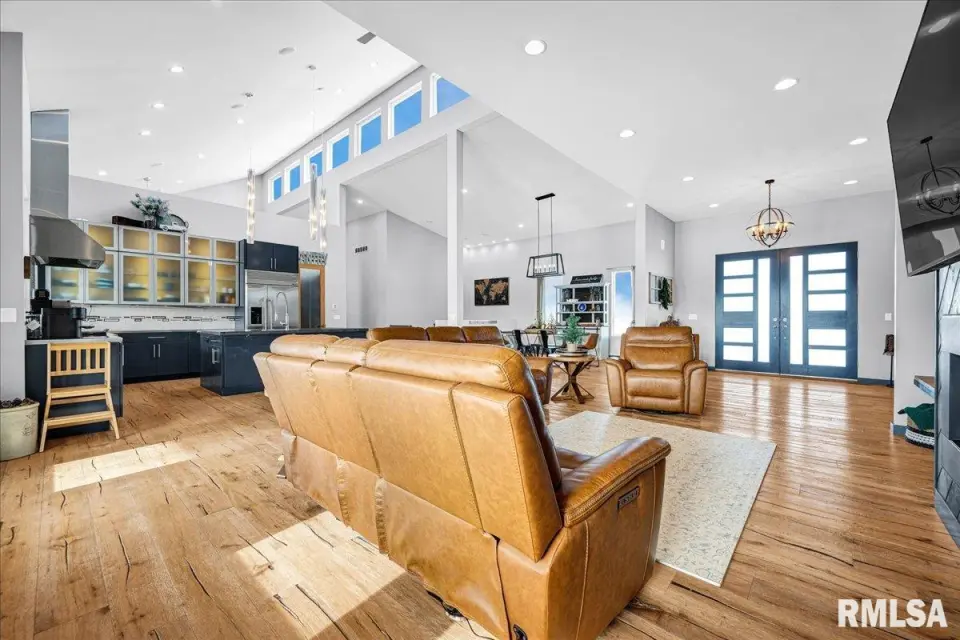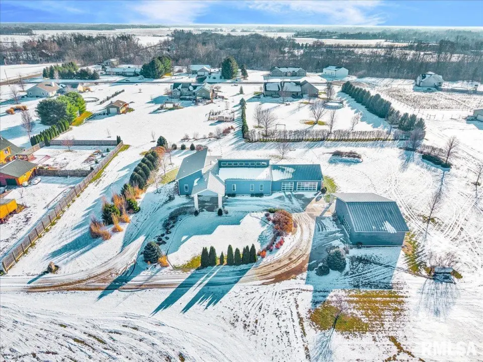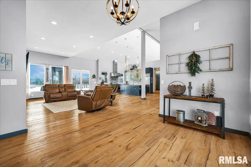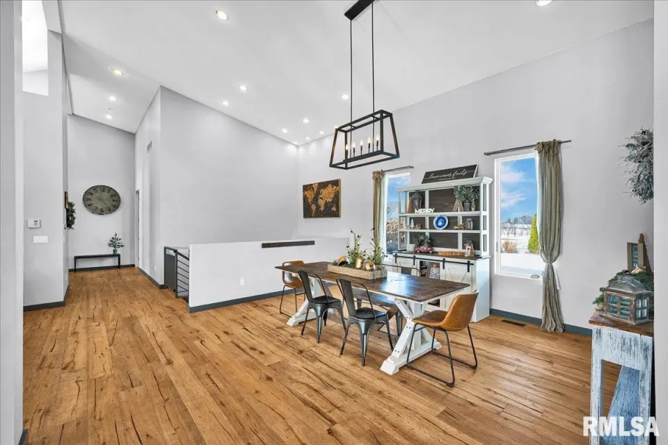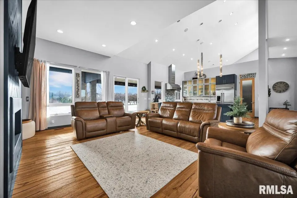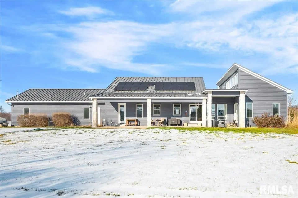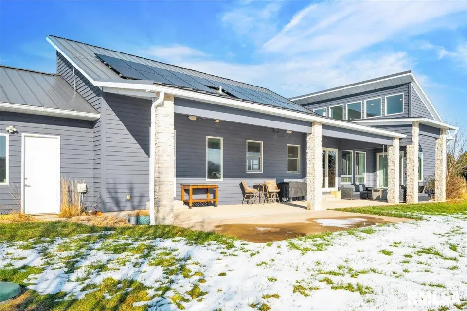 Vaulted ceilings and an open-concept layout create a bright, inviting feel, enhanced by hardwood floors and the convenience of a main level laundry room. The primary suite features heated bathroom floors, adding everyday comfort and luxury. Garage space is truly exceptional, offering a 3-stall heated attached garage with a floor drain, perfect for winter car care, plus a brand-new 2 stall garage built in 2024 with heated concrete floors, in-floor drain, and waterproof Trusscore walls. Ideal for entertaining, this home includes whole-house surround sound inside and out and a finished basement with a wet bar and granite countertops. Additional highlights include a durable metal lifetime roof, a shared well with five neighbors at just $120 per year, and solar panels clamped to the roof with no penetrations, making them easy to remove if desired. Sellers will pay the solar loan off at or before closing, offering added peace of mind to your buyers. The solar panels have a 25 year warranty and the warranty will be passed along to the new buyers at no charge. The solar panels were put on in 2022. This home truly delivers space, quality, and functionality in every detail. Schedule your showing today!