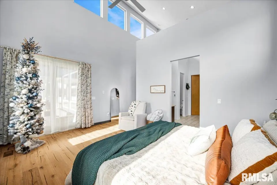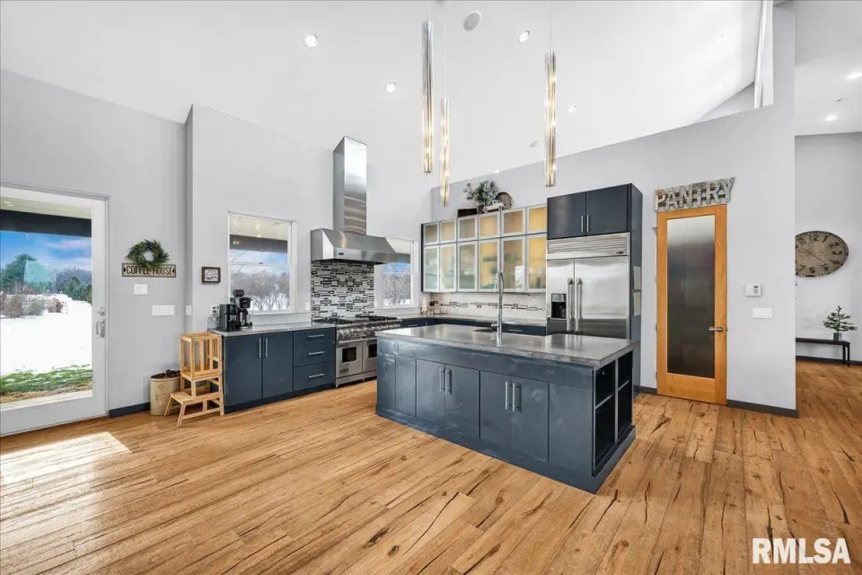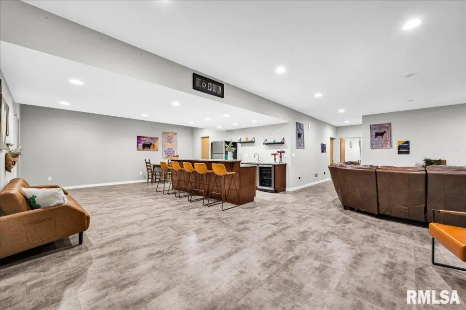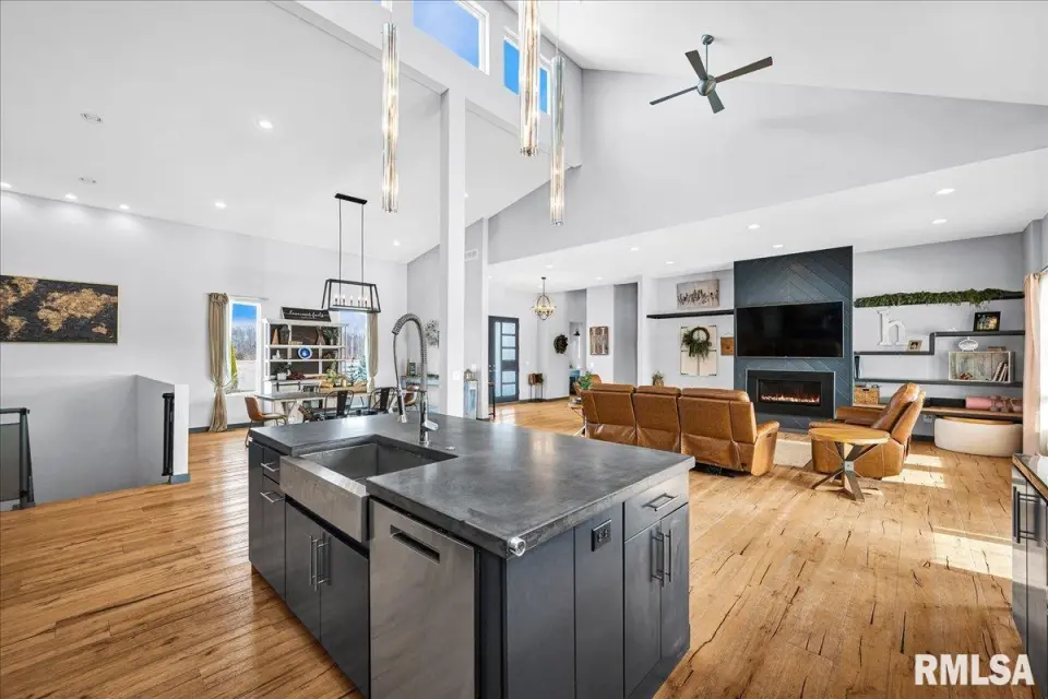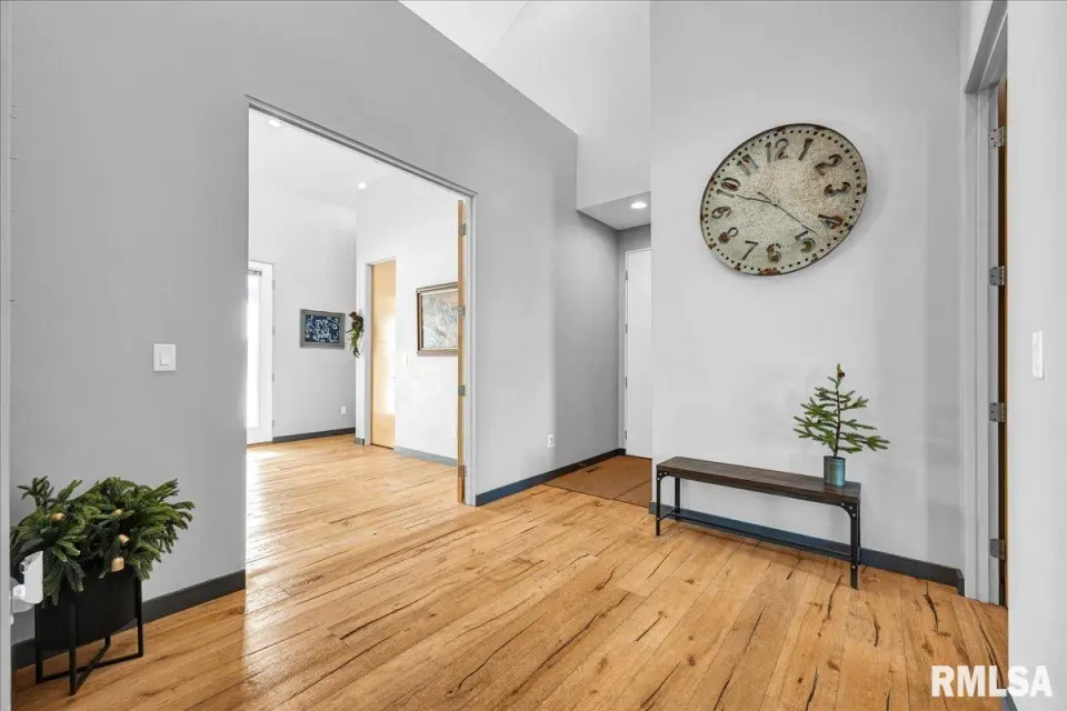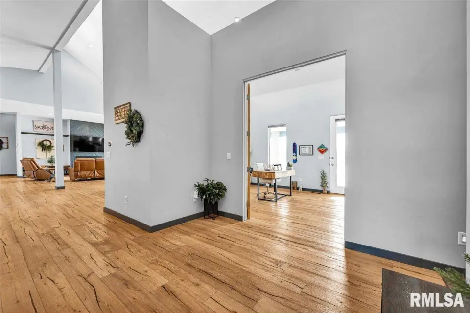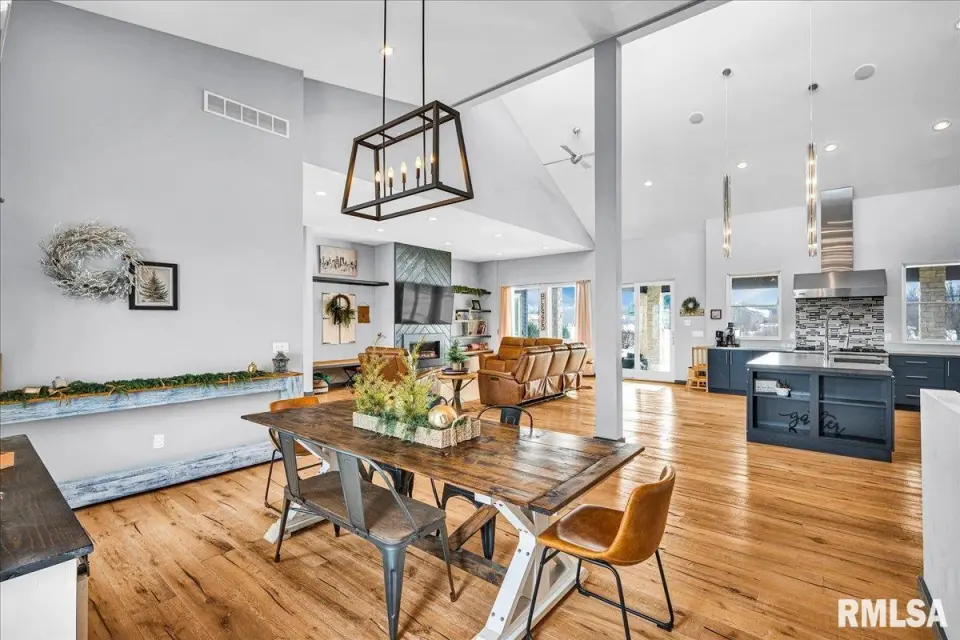 Vaulted ceilings and an open-concept layout create a bright, inviting feel, enhanced by hardwood floors and the convenience of a main level laundry room. The primary suite features heated bathroom floors, adding everyday comfort and luxury. Garage space is truly exceptional, offering a 3-stall heated attached garage with a floor drain, perfect for winter car care, plus a brand-new 2 stall garage built in 2024 with heated concrete floors, in-floor drain, and waterproof Trusscore walls. Ideal for entertaining, this home includes whole-house surround sound inside and out and a finished basement with a wet bar and granite countertops. Additional highlights include a durable metal lifetime roof, a shared well with five neighbors at just $120 per year, and solar panels clamped to the roof with no penetrations, making them easy to remove if desired. Sellers will pay the solar loan off at or before closing, offering added peace of mind to your buyers. The solar panels have a 25 year warranty and the warranty will be passed along to the new buyers at no charge. The solar panels were put on in 2022. This home truly delivers space, quality, and functionality in every detail. Schedule your showing today!