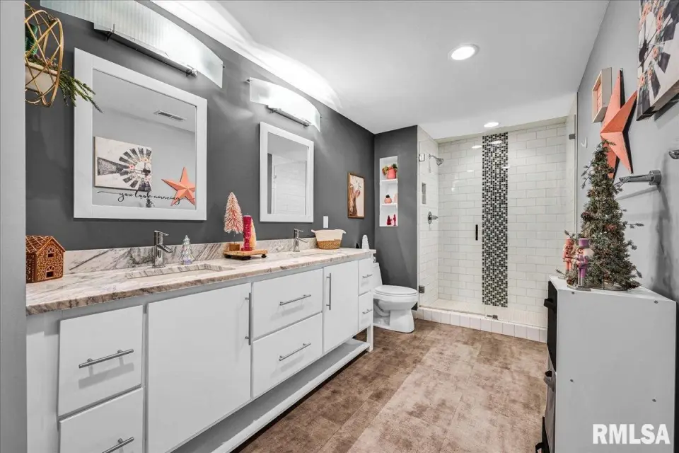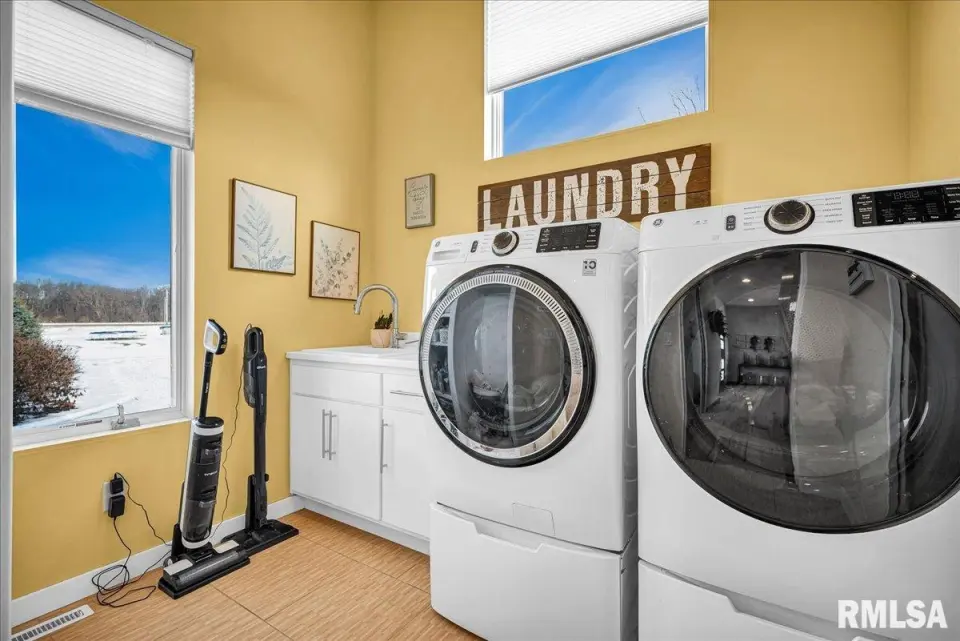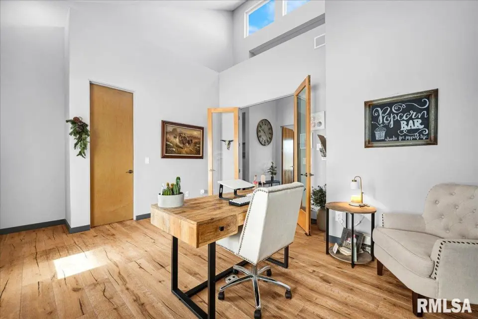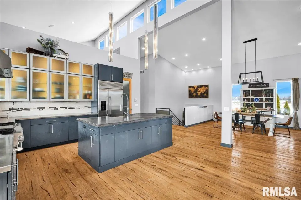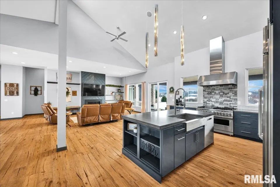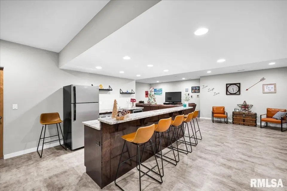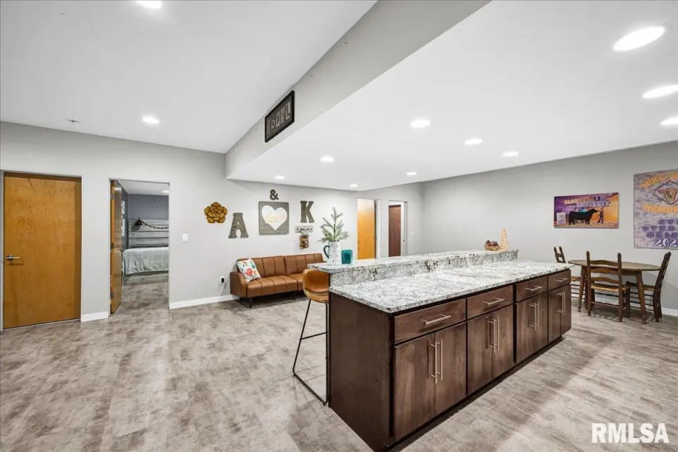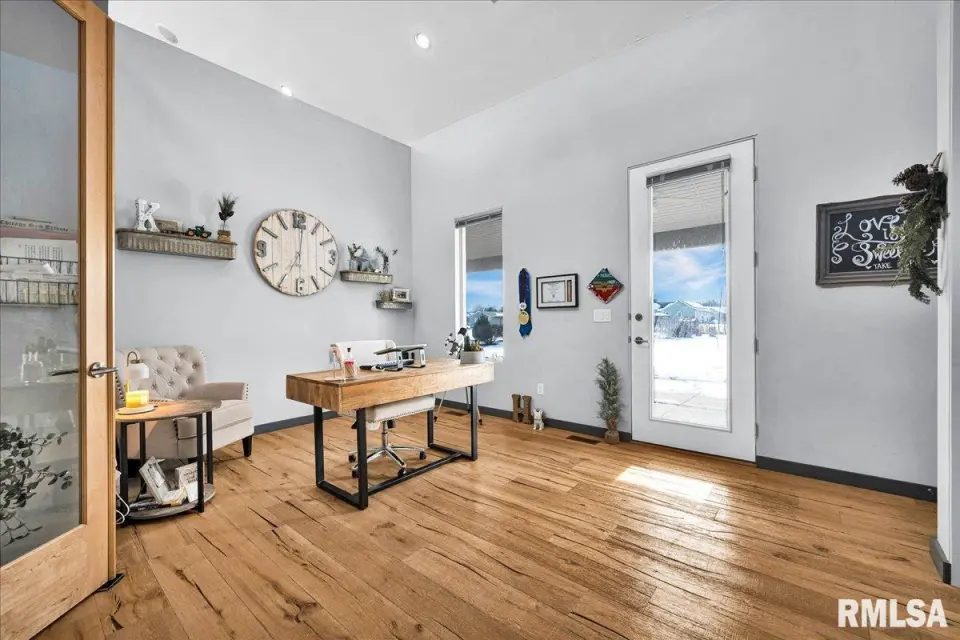 Vaulted ceilings and an open-concept layout create a bright, inviting feel, enhanced by hardwood floors and the convenience of a main level laundry room. The primary suite features heated bathroom floors, adding everyday comfort and luxury. Garage space is truly exceptional, offering a 3-stall heated attached garage with a floor drain, perfect for winter car care, plus a brand-new 2 stall garage built in 2024 with heated concrete floors, in-floor drain, and waterproof Trusscore walls. Ideal for entertaining, this home includes whole-house surround sound inside and out and a finished basement with a wet bar and granite countertops. Additional highlights include a durable metal lifetime roof, a shared well with five neighbors at just $120 per year, and solar panels clamped to the roof with no penetrations, making them easy to remove if desired. Sellers will pay the solar loan off at or before closing, offering added peace of mind to your buyers. The solar panels have a 25 year warranty and the warranty will be passed along to the new buyers at no charge. The solar panels were put on in 2022. This home truly delivers space, quality, and functionality in every detail. Schedule your showing today!
