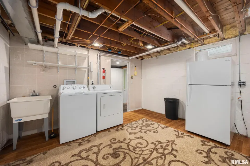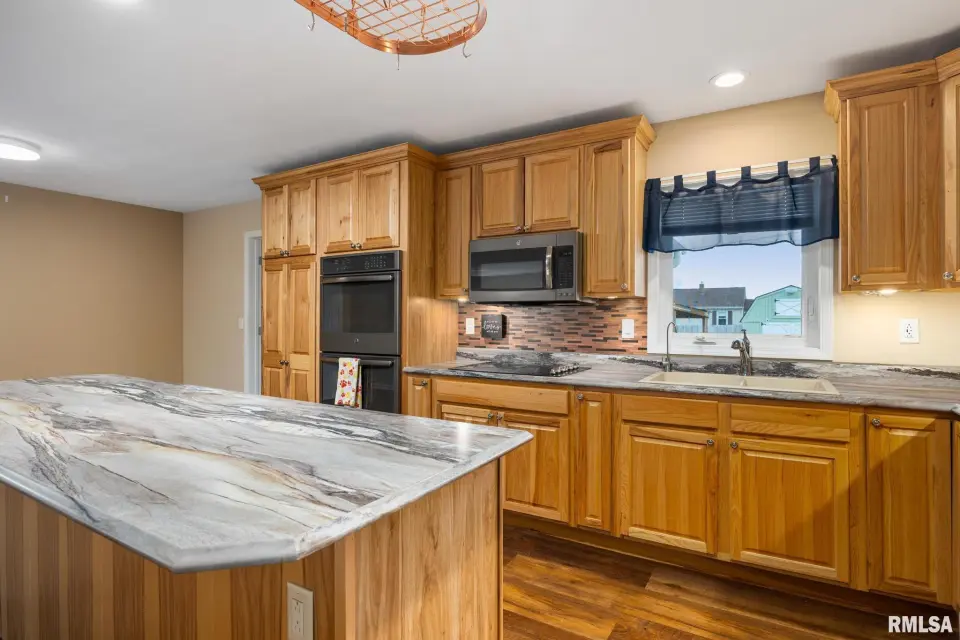 This home offers more space than it appears from the outside, featuring a thoughtful layout that accommodates comfortable living and functions well for a variety of needs. The main level features consistent, easy-maintenance luxury vinyl plank flooring throughout, creating a clean, cohesive flow from room to room. Inside, you will find 4 bedrooms and 2 full bathrooms, including a bathroom with a relaxing jetted tub. The remodeled kitchen includes stainless steel appliances, a double oven, ample cabinet space, and all appliances stay with the home, including the washer and dryer in the spacious laundry room. Multiple living areas set this home apart, with a family room on the main level and an additional family room in the basement, offering flexibility for entertaining, movie nights, hobbies, or to enjoy the big game!. A versatile flex room adds even more options and can easily serve as a home office, workout space or playroom. Outside, enjoy a fenced yard with a storage shed, ideal for pets, outdoor activities, or gardening. An attached garage provides everyday convenience and extra storage. Solid brick construction, pride of ownership, and a Northside location close to amenities make this home a smart, turn-key choice. Schedule your showing to see how much space and value this home has to offer.
