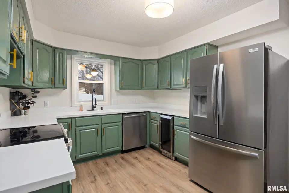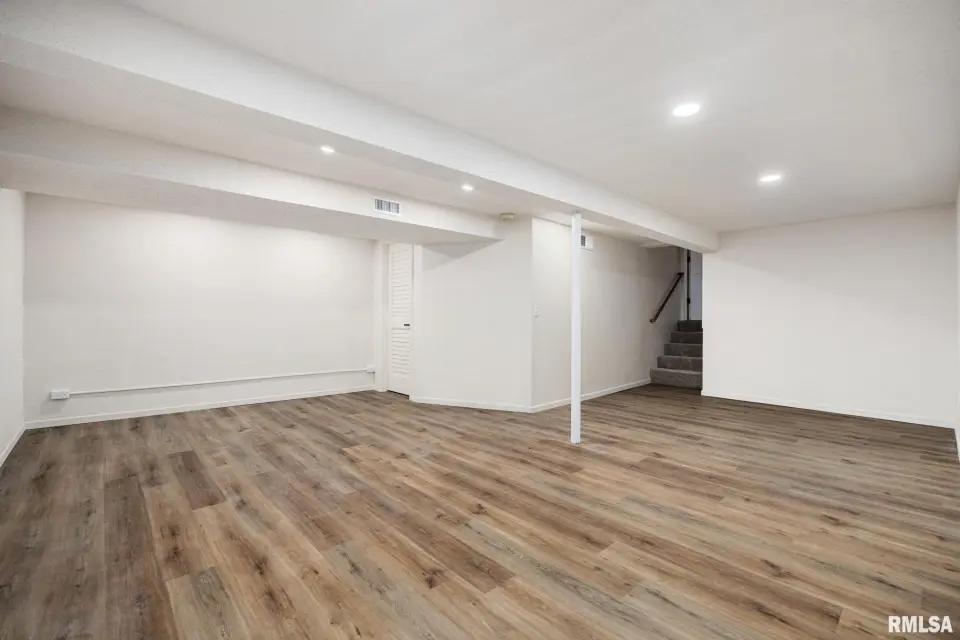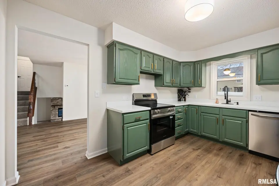 You initially experience the open concept formal living room and formal dining. The kitchen is adjacent and is adorned with plenty of cabinetry and new stainless appliances. Throughout the entire upper floor living space you'll enjoy the plush new carpet. All bedrooms are spacious and offer large closets. The primary suite has dual closets and an attached full bath. Downstairs the space continues in the lower level all still ground level views. The family room has a gas log fireplace and a brick hearth. The 4th bedroom *No closet* could also be a great home office, toy or craft room as well. The laundry room is large enough for more storage or even add a folding table. The basement has new luxury vinyl plank flooring, a utility room and a space for shelved storage. When you're wanting to enjoy the outdoors you'll have plenty of space on this double corner lot. With the updates throughout, his house is ready for it's new owners. Agent interest.