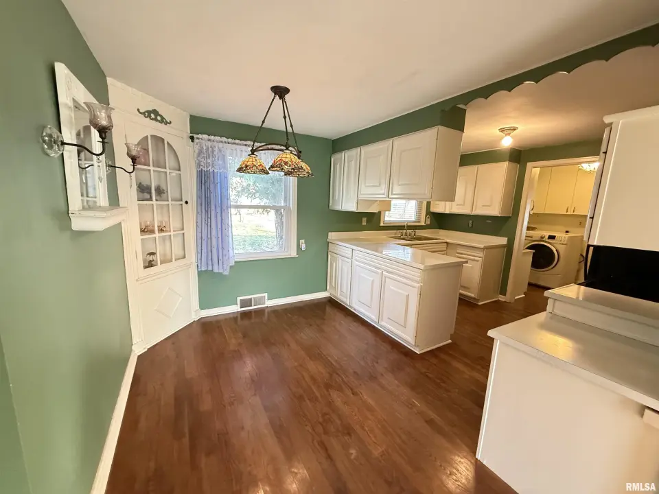 Hardwood floors in the kitchen, bedrooms and laundry room. Don't miss the two garages, 15X25 heated attached and 18X22 detached with alley access. Furnace and H2O heater new in 2007. Roof on house 2010, garage roof 2025. Love the bathroom remodel with subway tile surround and flooring. Entrance to insulated attic and crawl is in garage. Taxes reflect Disabled Veteran exemption.