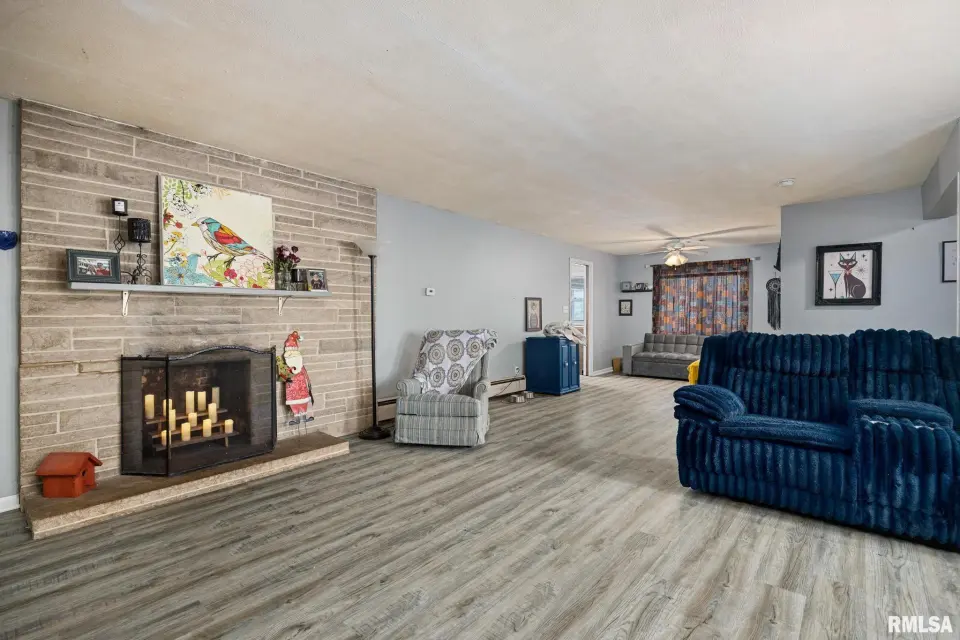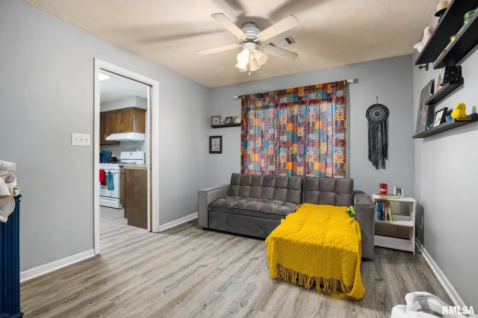 The informal dining room flows seamlessly into the kitchen, where all appliances stay and convenient access out to your covered back patio—perfect for relaxing. The main level features a generously sized primary bedroom, two additional bedrooms, and two full baths, offering comfort and functionality. The basement expands your living space with a rec room, hobby/play room, a fourth bedroom, and abundant storage. Updates include roof, flooring, & paint. Great flow and versatile spaces make this home a standout. Schedule your showing today! Sold AS-IS!