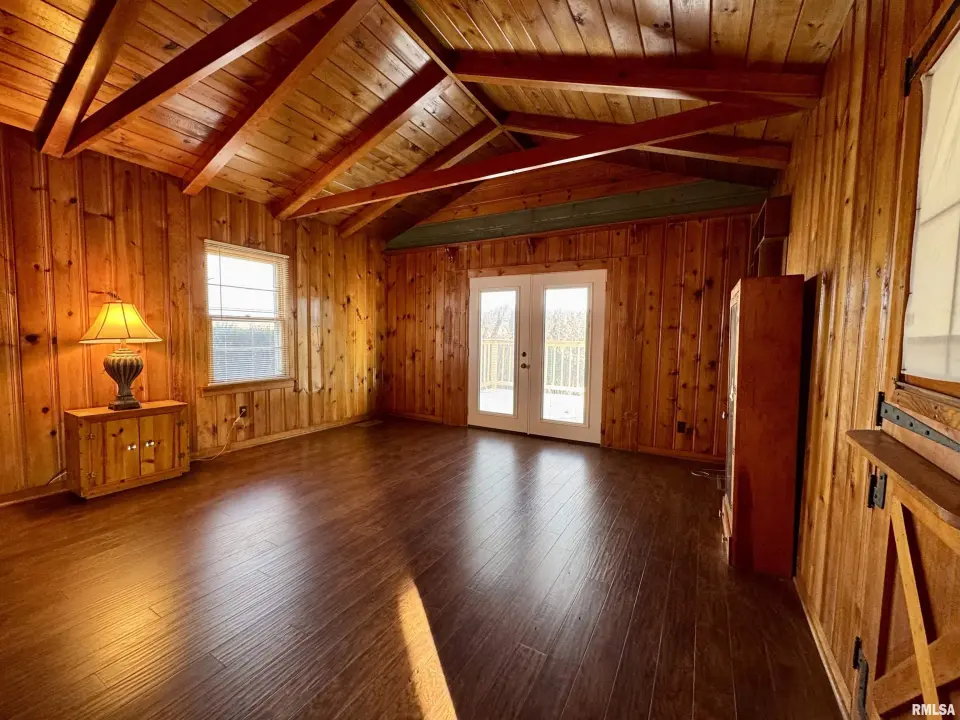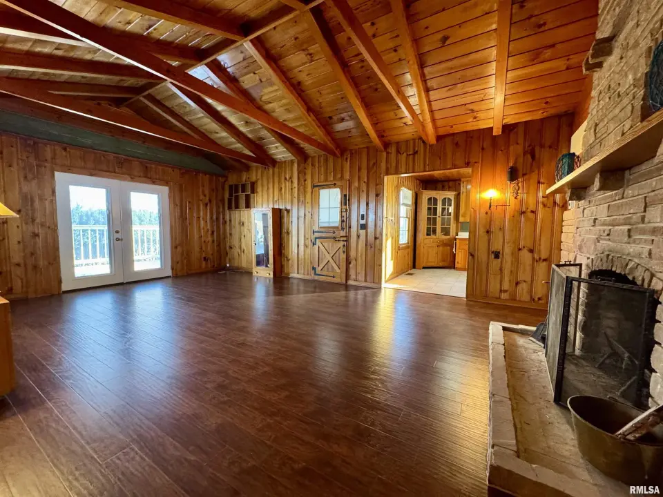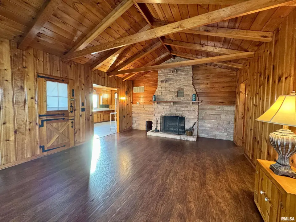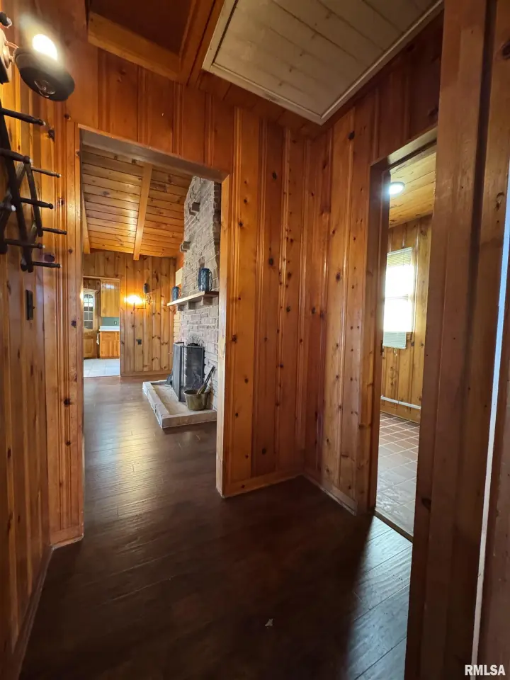 This "cabin," as the owners call it, has updated plumbing, appliances, engineered hardwood flooring and a remodeled bathroom. Beautiful knotty pine walls and doors are present throughout the home. The wood burning, stone fireplace and vaulted ceilings in the open concept living/dining room add to the ambience of a cozy cabin. The kitchen is large enough for an eat-in and has lots of counter space as well as upper and lower cabinetry. Off of the kitchen is a small mud room/utility room. The bedroom is 15X11 and has a walk-in closet A few feet from the home is a 30X22 heated, 1 car, garage with a concrete floor, refrigerator, sink and riding lawn mower. The well-maintained garage is complete with ceiling fans. The property also has an original garage that is currently used as storage and an inground fruit storage area that could also be used as a storm shelter. More details in the disclosures. Schedule your appointment today.