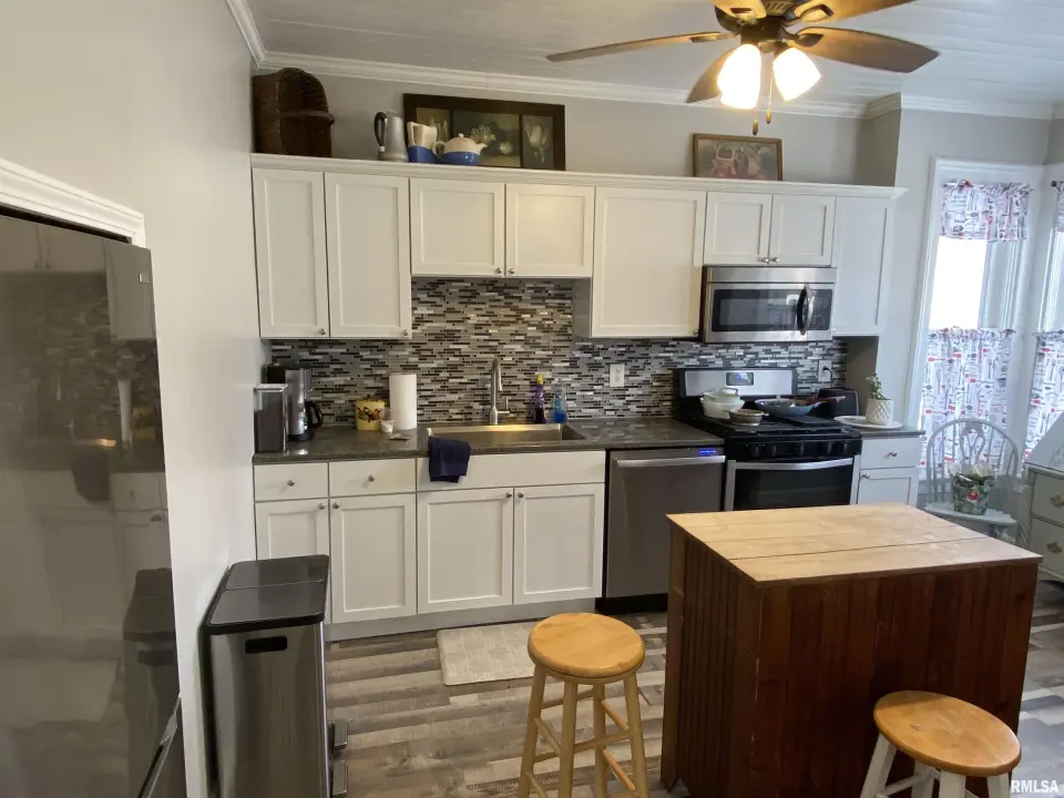 The owner lives on the main level, and the upper level can be rented or provide privacy for a family member with a full bath and kitchen, complete with a range and refrigerator. The main kitchen was completely remodeled in 2021, including new appliances (range, refrigerator, dishwasher, and microwave). The laundry room, located off the main bedroom, features a stack washer and dryer. A wood fence surrounds the yard, providing a play area or outdoor space for that friendly pet.