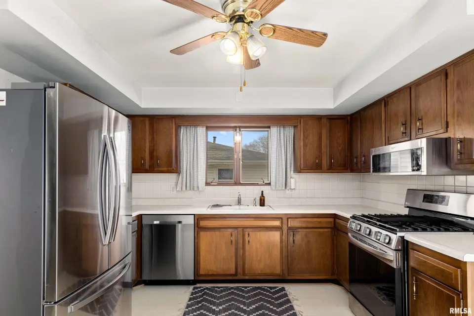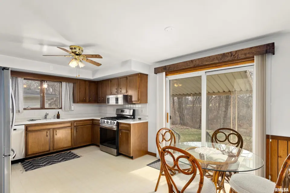 The living room has a fireplace a large windows with gorgeous views of the backyard. The kitchen comes with appliances that were installed in 2021. The roof and water softener were done in 2021. The water heater is 2014. Both main floor bathrooms have updated shower surrounds. The home has been landscaped and brick pavers added. The backyard has a covered patio, a relaxing wood setting. The family room is located in the walkout basement and includes a 2 sided fireplace. Schedule your showing today!