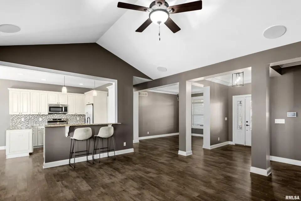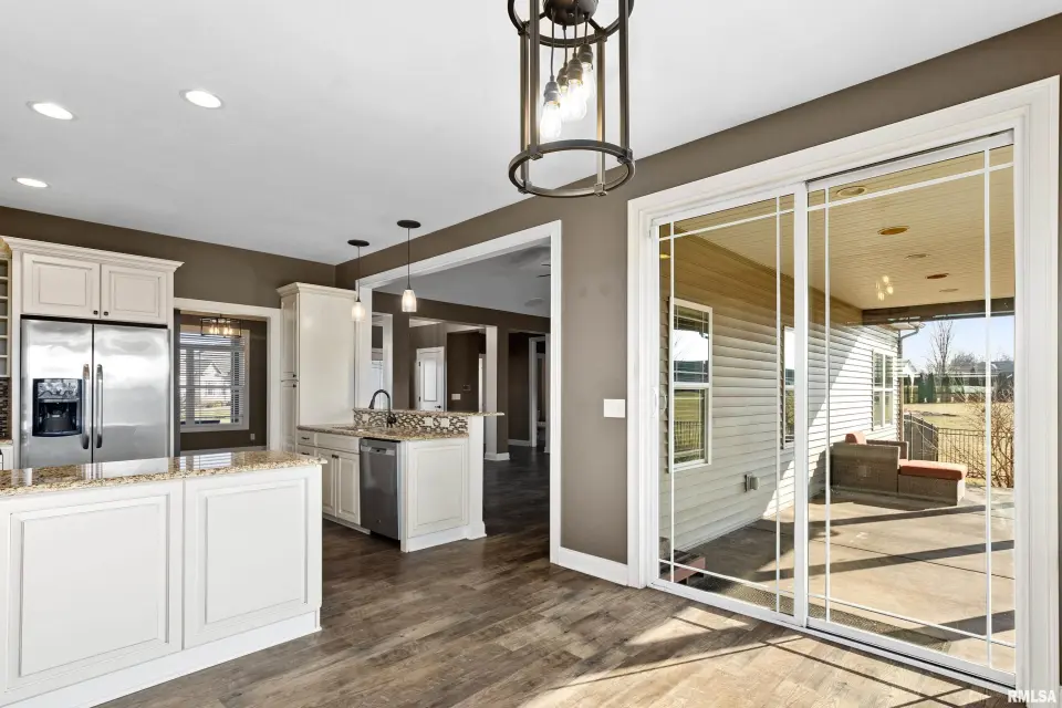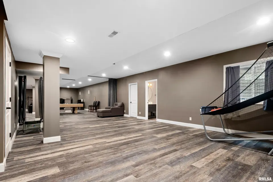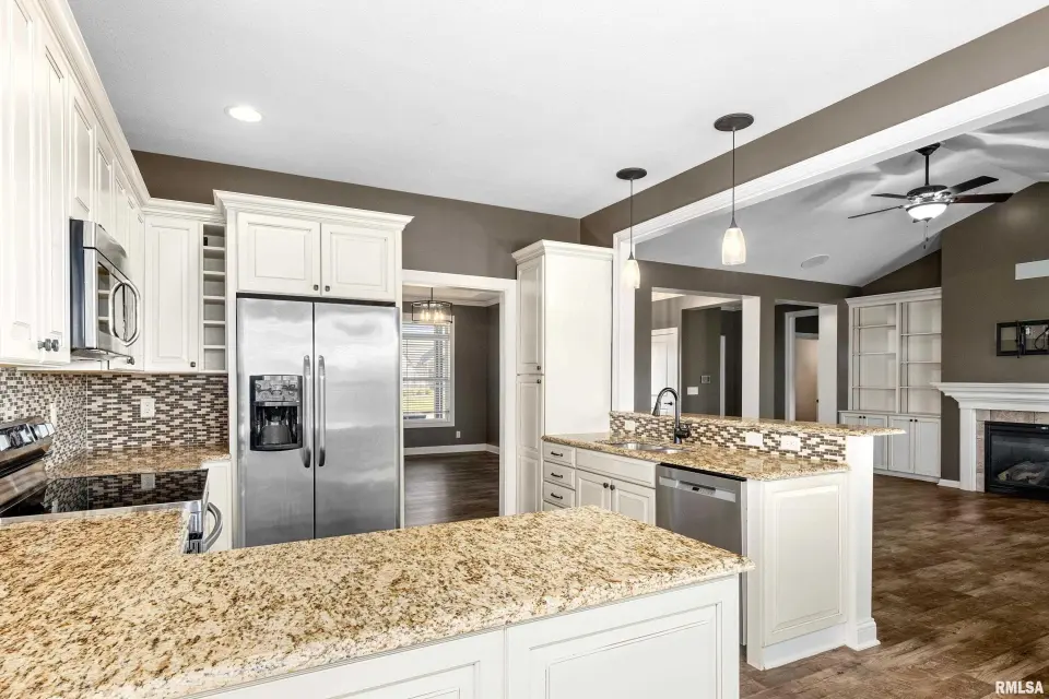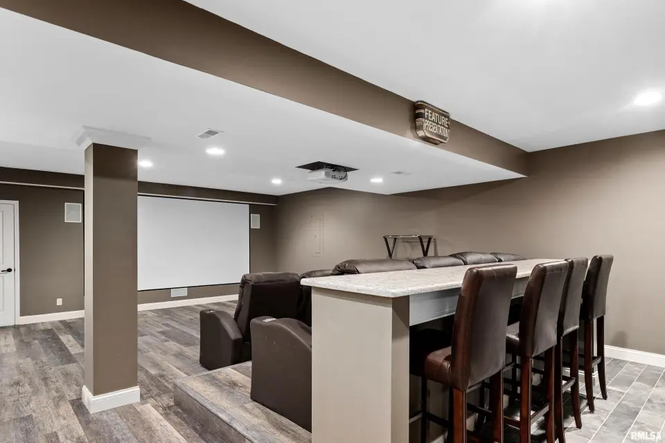 This home offers something for everyone! Finished basement has theater room with overhead projector/theater chairs/pool table`& bar seating. Master suite boasts a jetted tub, separate shower, double sinks & spacious walk-in closet. Main level laundry & mudroom right off the garage. Wonderful open floor plan with room for everyone plus a large covered back yard patio perfect for grilling out. Fenced yard is just a portion of the property. The row of trees to North is also part of the property. You don't want to miss this one. All appliances work but sold AS IS. ELMWOOD SCHOOLS - make your appointment today.