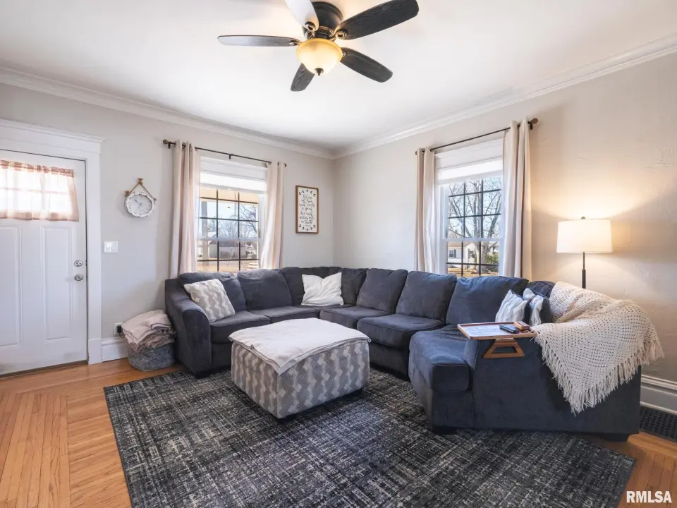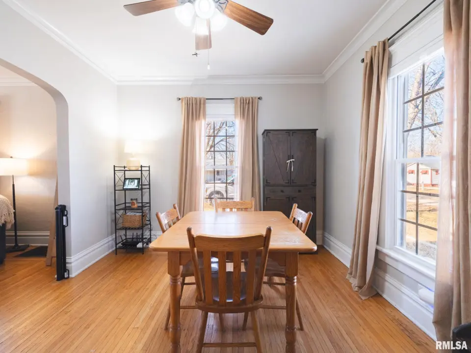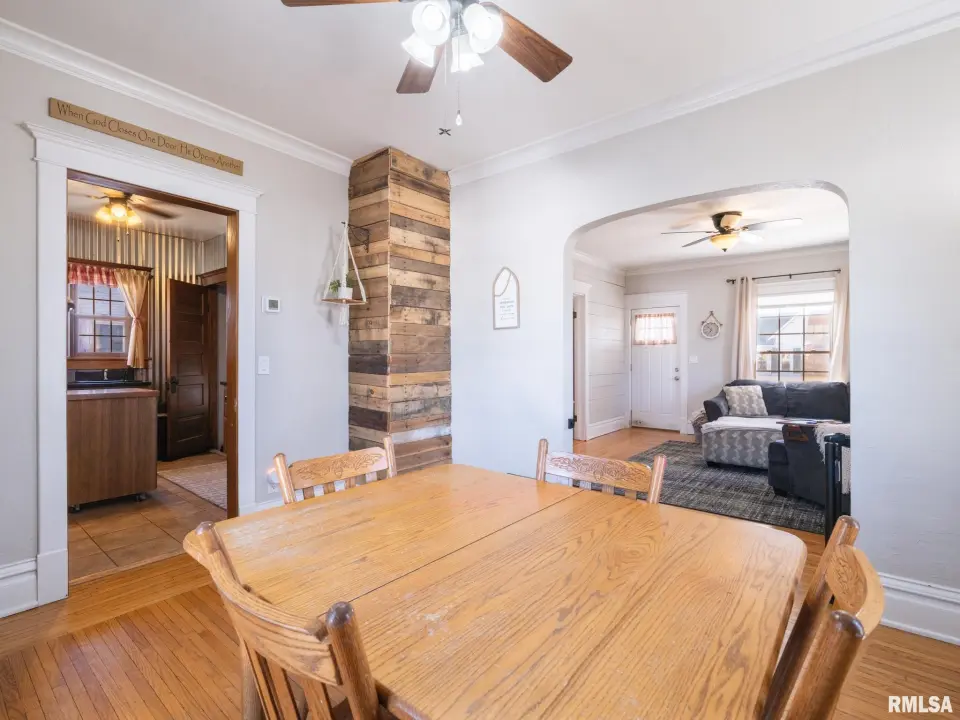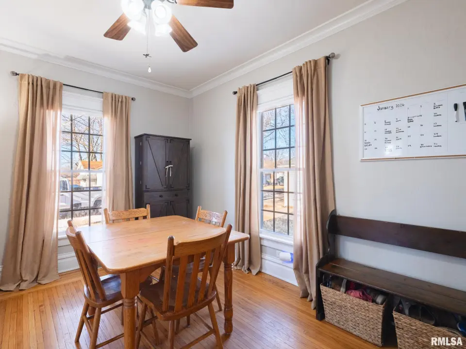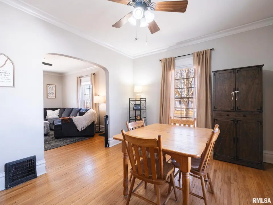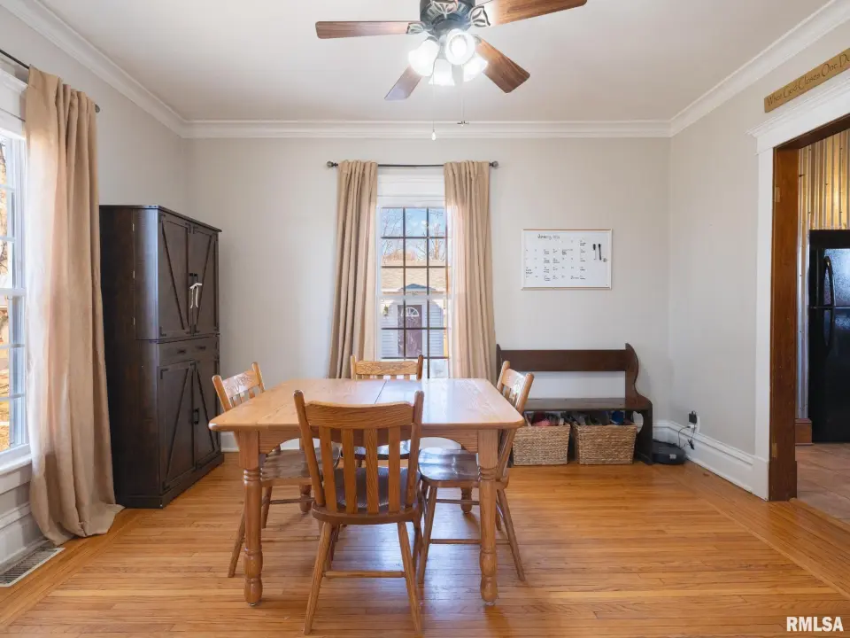 From the inviting covered front porch to the bright, airy interior, you’ll immediately feel at home. The main floor offers beautiful hardwood floors, tall ceilings, crown molding, and abundant natural light throughout, along with the convenience of a main floor bedroom. The cozy living room provides a welcoming space to relax, while the adjoining dining area is perfect for everyday meals or hosting guests. The kitchen features warm wood cabinetry, ample counter space, a center island, and charming vintage touches that add to the home’s personality. Upstairs bedrooms offer comfortable retreats with generous windows and classic trim. Outside, the spacious yard allows room to garden, play, or entertain, and the 2 car detached garage adds plenty of room for hobbies and storage. Situated on a quiet street in the heart of Glasford near schools, shopping, and local amenities, this home is a wonderful opportunity to enjoy classic style, functional living, and small-town charm. Roof (18), Water Heater (24), Fresh Paint (25).