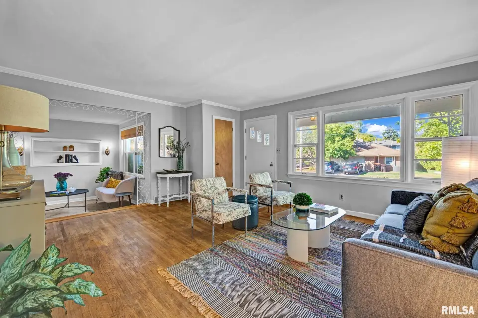 Fully fenced in yard with brick patio. The main floor includes two living spaces, kitchen, dining room, two bedrooms and full bathroom. Additional bedroom & bathroom upstairs. Washer and dryer included in basement. Agent Owned.