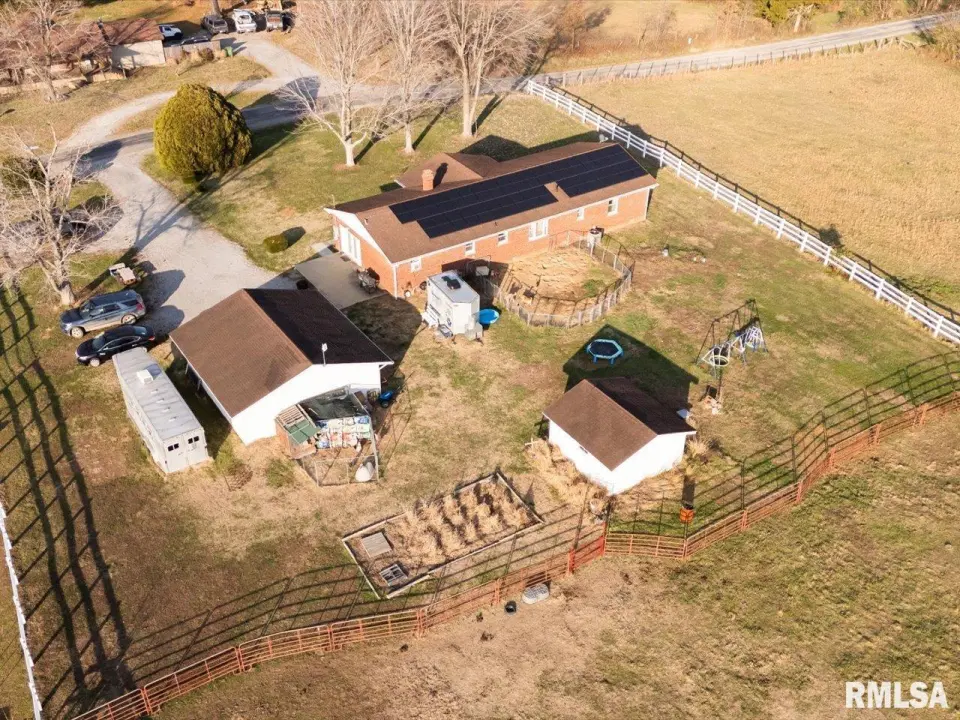This brick home offers 3 spacious bedrooms, 2 full baths, and sits on approximately 15 acres.The family room features a cozy woodburning fireplace, and the laundry room comes with a washer and dryer included. Outside, you'll find a detached 2-car garage, alarge 72' x 26' pole barn with 5 stalls, and a storage shed. With plenty of open space, it's perfect for horses, dirt bikes, gardening, or any outdoor hobby. All this just 10miles from Marion. Solar Information: The solar panels require a $250 buy-in/transfer fee for the new owners. They are set up one-to-one with Ameren, meaning excessenergy produced during high-solar days is banked and used during the winter at a full one-for-one credit. The Ameren base bill is approximately $16, plus the solaramount.