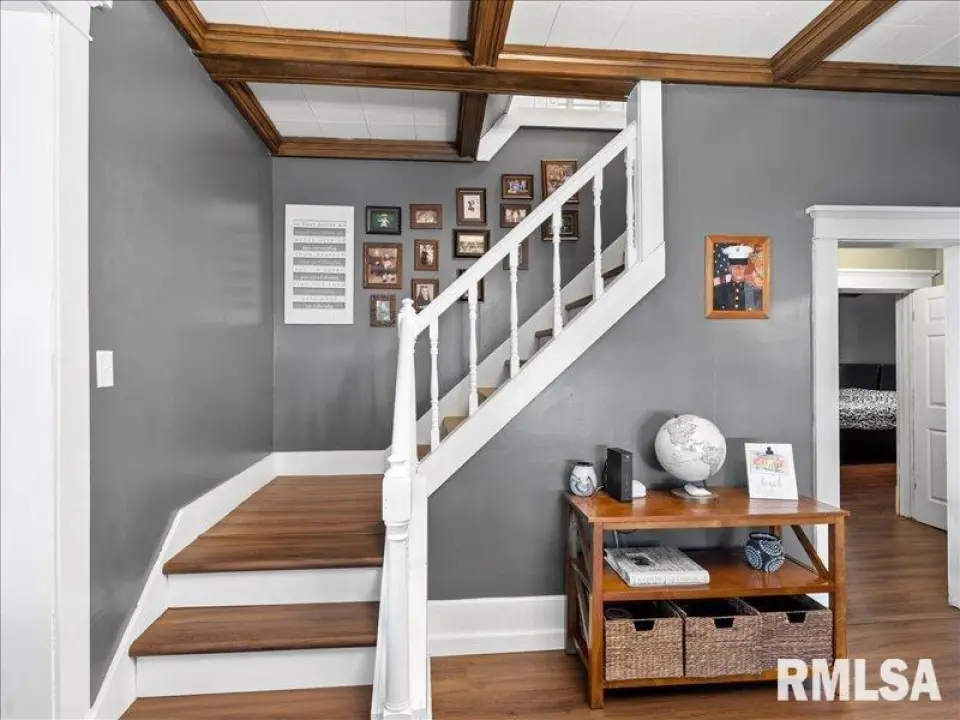 This isn't just a house; it’s a masterclass in detail. The spacious living room features a striking stone-surround fireplace flanked by custom built-in shelving, all set beneath an architectural coffered ceiling with rich wood beams. The dining room continues the theme with classic French doors and designer lighting, perfect for hosting Sunday dinners. Retreat to a primary suite that feels like a private spa, featuring a massive walk-in shower and a contemporary vanity. With a large yard, stylish finishes throughout, this home offers the perfect balance of vintage soul and modern convenience!