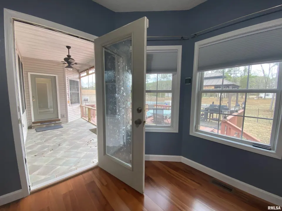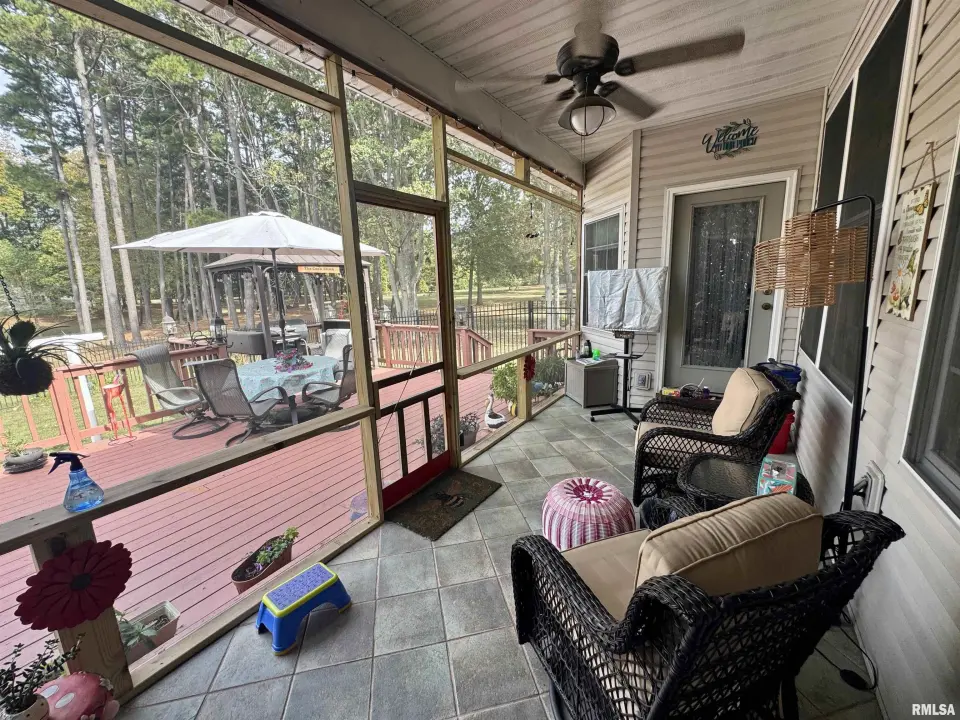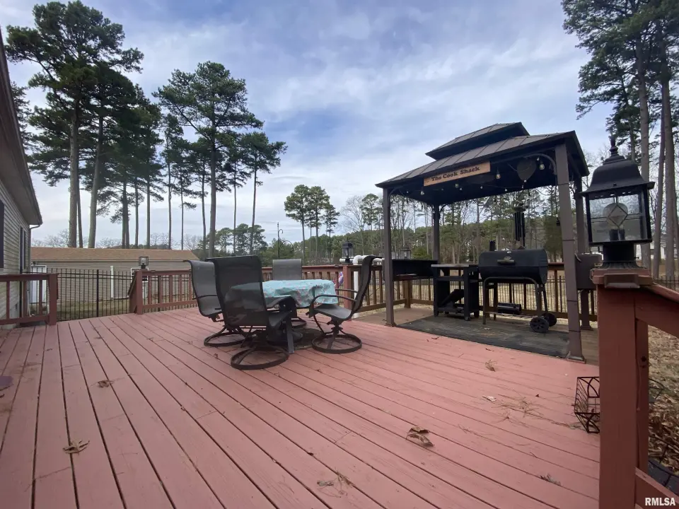 The split floor-plan includes an eat-in kitchen along with formal dining area and an office space. The screened porch overlooks a great deck that includes a covered grilling area. Partially fenced yard, a storage shed, and an insulated finished detached garage with a split unit are a few of the added extras of this property. Updates in the last two years include master bath remodel, guest bath upgrades, professional landscaping, new kitchen and bath flooring, new screen for porch in 2023, new roof, split unit in out building, kitchen backsplash, 2024, and a new HVAC 2025. This one could easily be your Forever Home.