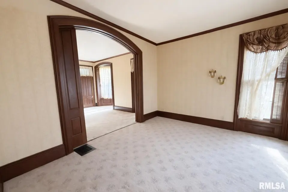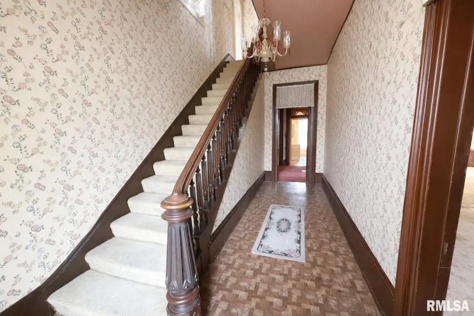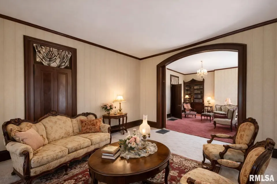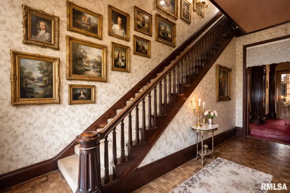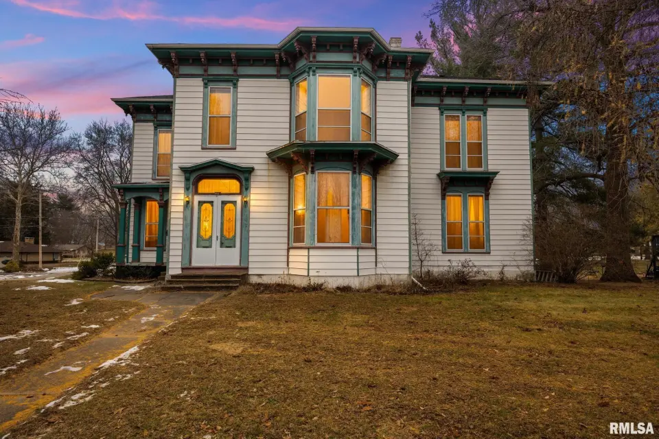 Built during the town’s earliest years, the home retains original woodwork, transom windows above solid wood doorways, a historic grand staircase, large build ins, and timeless architectural character. Original features also include a butler's pantry with a passthrough serving window to dining room, and a separate butler's stairwell. With five bedrooms, two full baths, a newer roof (2022), and modern mechanical updates, this home thoughtfully blends historic charm with functional living. The exterior presents a stately façade accented by ornate corbels that wrap the home, reinforcing its distinguished architectural presence. A truly special property for those who appreciate craftsmanship, history, and character rarely found today. The estate sits on a double lot which is over half an acre with a detached two car garage and a couple porches. Agent Owned.