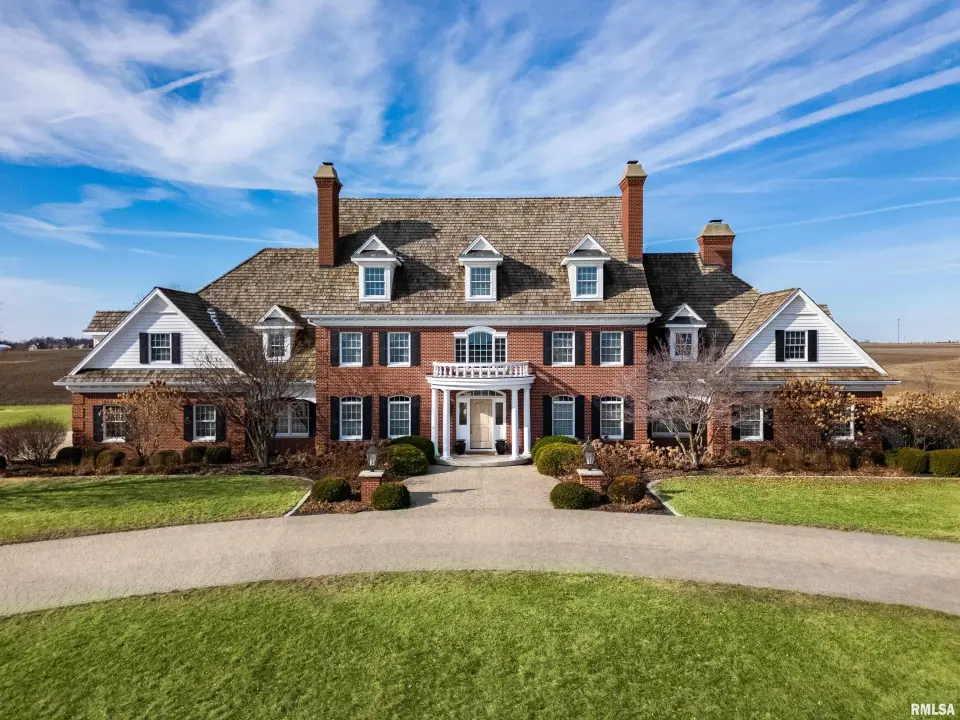 finished basement, extensive custom millwork, Andersen windows, many recent updates, open flr plan yet inviting cozy spaces to enjoy! Solid Mahogany front dr opens to a grand 2-story foyer w/sweeping curved staircase setting the tone for the quality found throughout. Main level showcases refinished maple hardwood flrs, 10' ceilings w/12' ceilings in hearth rm w/exposed wood beam tongue & groove ceiling, frpl, expansive views of backyard w/access to back patio areas. Completely renovated Chef's Kitchen in '24 w/custom cabinetry, quartz countertops, high end appl, lg island w/seating, pantry, all centered between great rm, dining areas & hearth rm! Formal living/piano rm w/frpl is another beautiful space to enjoy! Very inviting climate controlled indoor pool rm to be enjoyed year around w/30' vaulted ceiling, 2nd kitchen, dining/gathering space, 2 full BA & laundry. 2nd story features 9' ceilings, primary suite w/attached study/office, 2 ensuites, 4th BR shares full BA, lg laundry rm & bonus rm above garage w/charming dormers & flexible living space. 3rd level offers future expansion potential! Ideal location between Peoria & Bloomington!