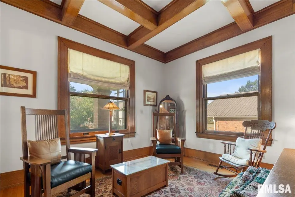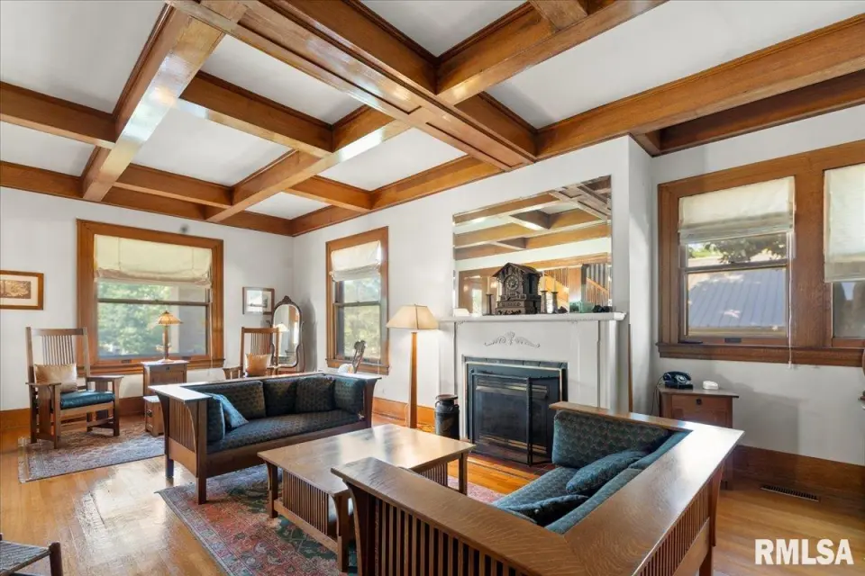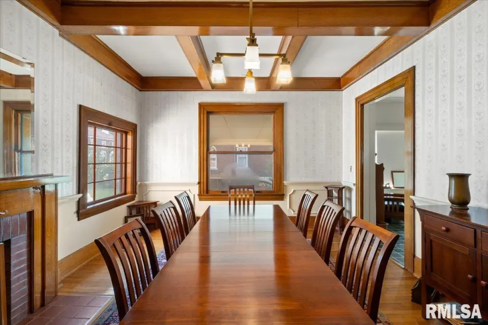 This brick 2-story residence showcases timeless craftsmanship, featuring solid white oak hardwood floors, an elegant staircase with original millwork, and intricate trim, casings, and molding that highlight the home’s rich character. The main level balances tradition and modern living. A formal dining room with a stunning fireplace and original detailing opens into a spacious living room with coffered ceilings—perfect for family gatherings or entertaining. The remodeled kitchen is thoughtfully designed, blending historic charm with modern upgrades including custom cabinetry and new stainless steel appliances. Upstairs, the bedrooms are generously sized with larger closets—rare for a home of this era. The updated full bath has a jet tub for relaxation and heated floor. A versatile third-floor attic is ready for your vision: office, playroom, or additional living space. The basement includes a laundry area, partial finishing, and space to update for future use. A newer 4-car garage and a period-style carport provide ample parking and storage. Located in Harrisburg, just minutes from Shawnee National Forest, Garden of the Gods, and Southeastern Illinois College, this home offers both history and convenience with easy access to shopping, dining, and regional employers. Schedule your showing today and experience the charm of Harrisburg’s historic district.