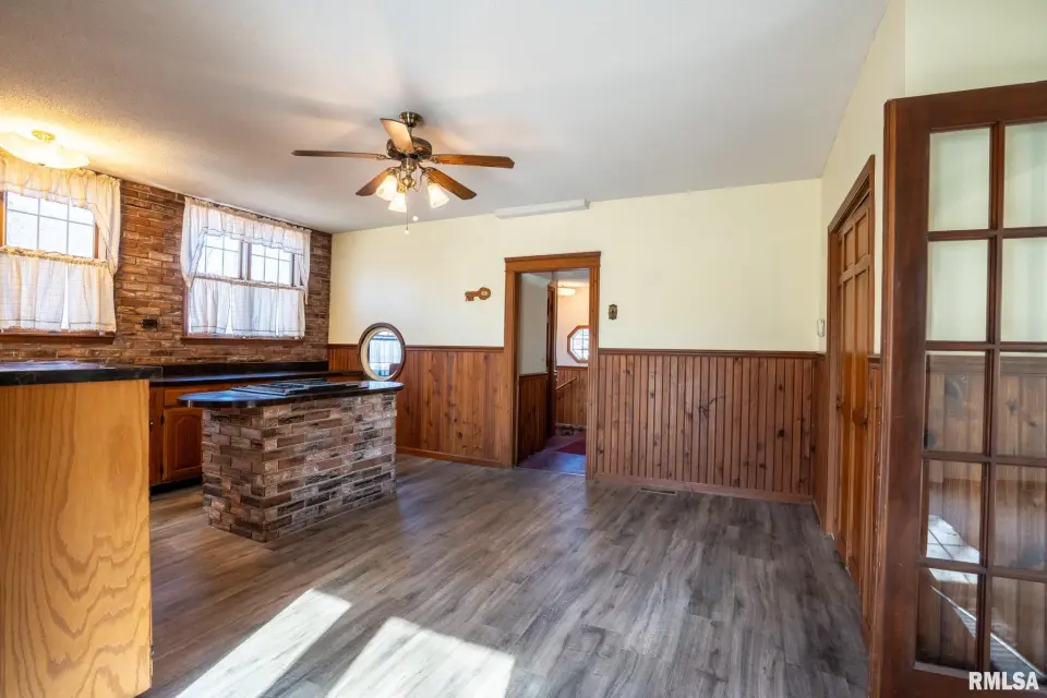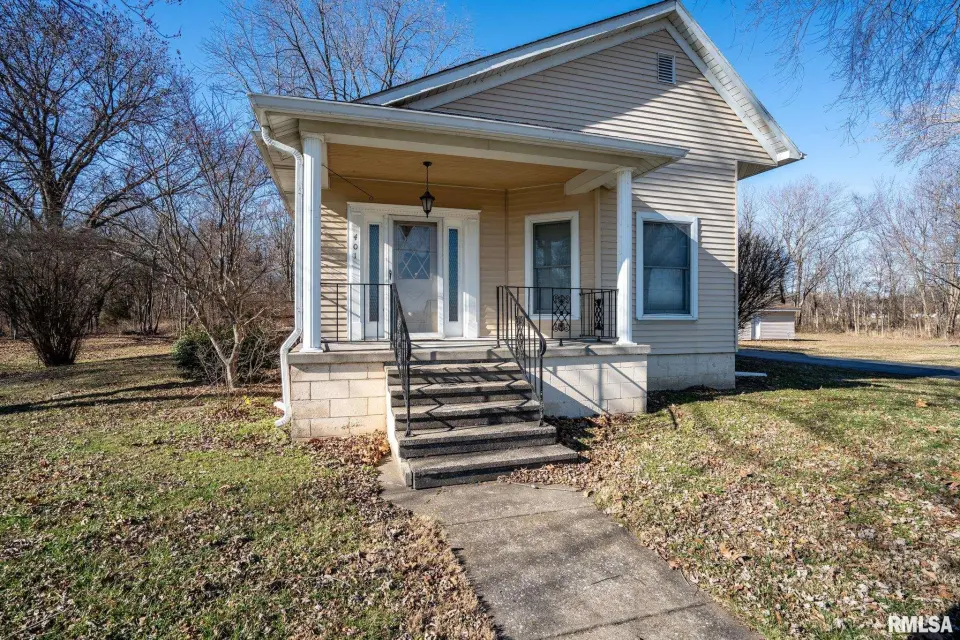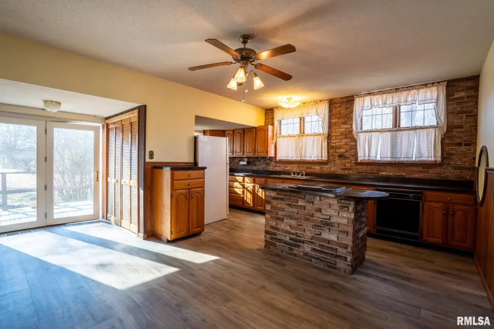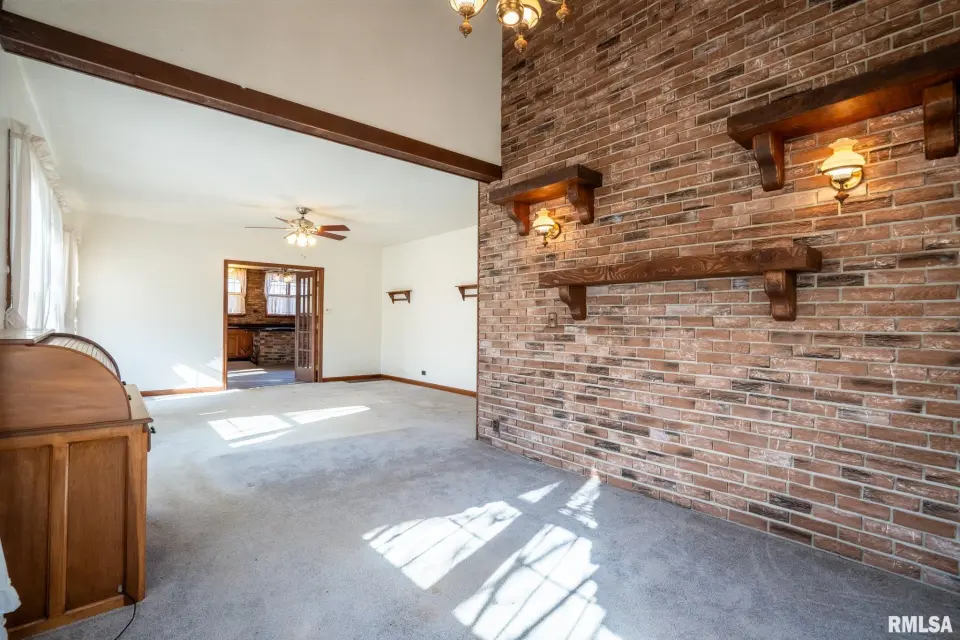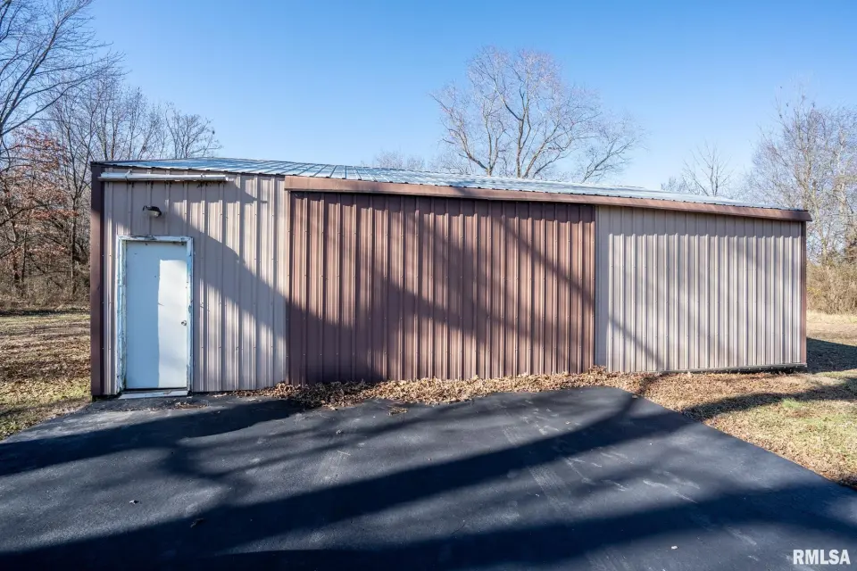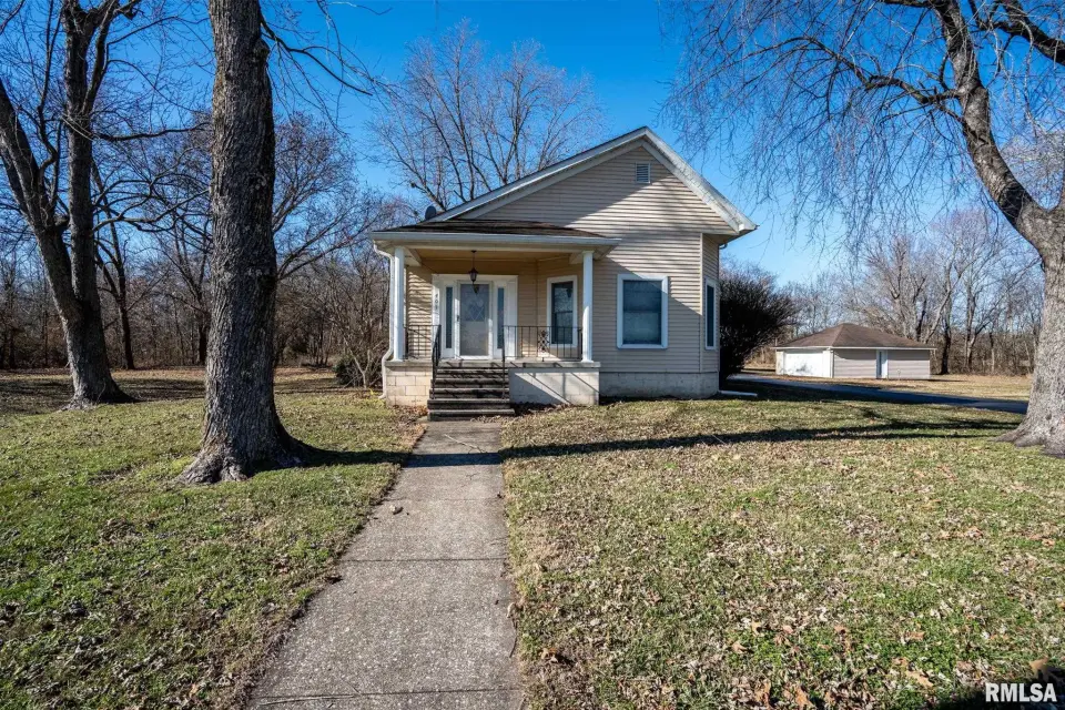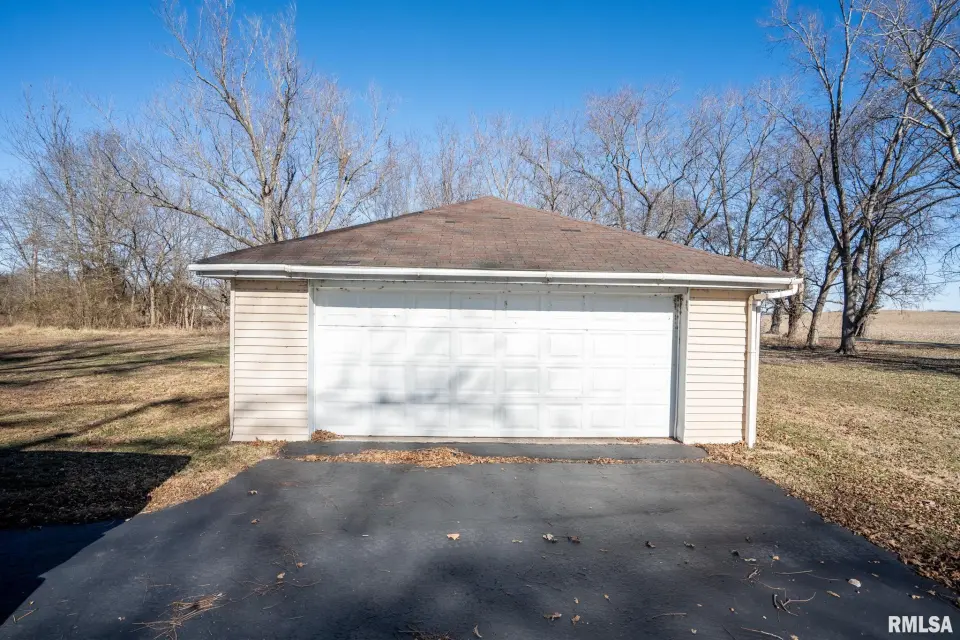 Lovingly owned by the same family for over 50 years, this solid oak-built home is full of character, craftsmanship, and what buyers love to hear: great bones. The large covered front porch offers peaceful views of the farm fields beyond. Inside, the spacious living room impresses with dark wood ceiling beams, a brick accent wall, antique light fixtures, floating wood shelves, and oversized windows that flood the space with natural light. The home offers 2 generously sized bedrooms and 2 bathrooms, each bedroom featuring direct bathroom access. Bathrooms showcase unique details like a stone accent wall and built-in vanity space. The inviting kitchen features a custom porthole window, ample cabinets and counter space, a brick island with built-in stove/oven, pantry closet, and new gray laminate flooring. Doors lead to a new back deck, plus easy access to a large attic ready to be finished and a full, dry unfinished basement perfect for storage. Outside you’ll find a large pole barn, detached garage, and plenty of parking. With 2.5 wooded acres and 7.5 open acres, this legacy property offers the perfect blend of privacy and usability. Call today for a showing!
