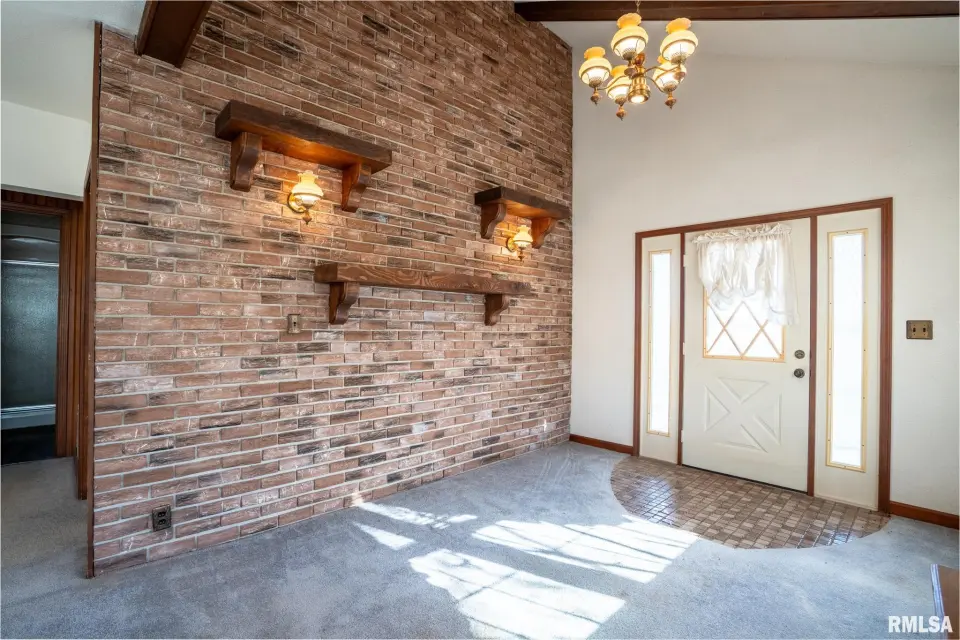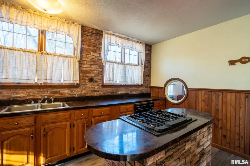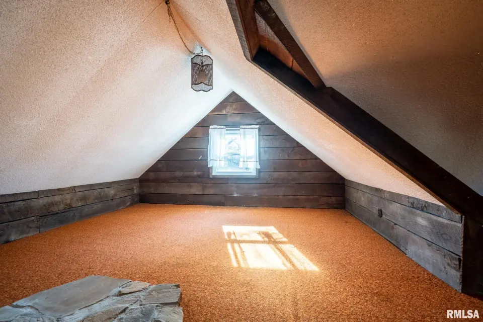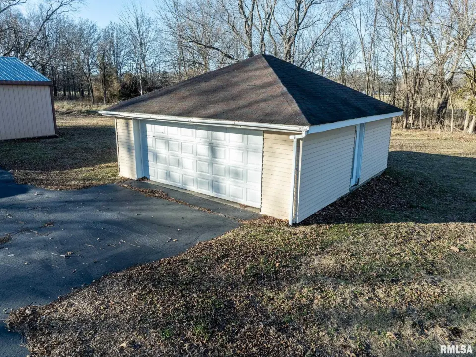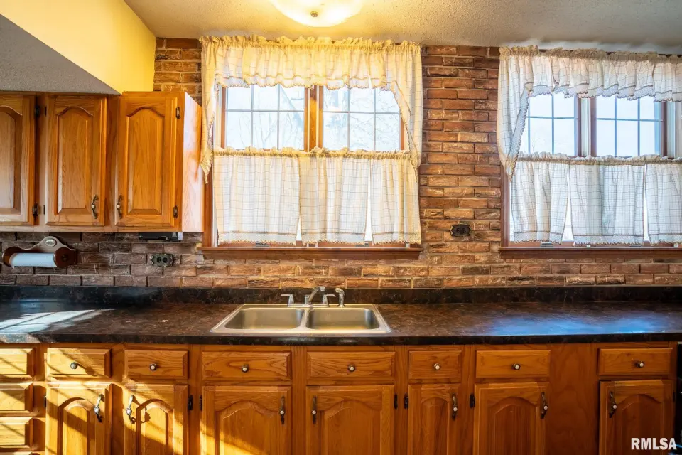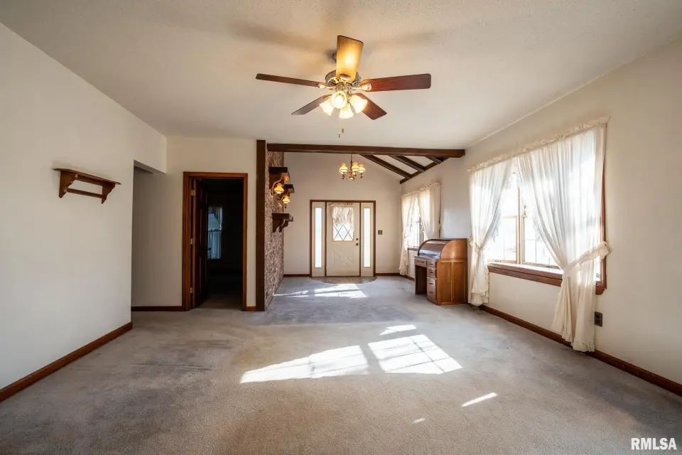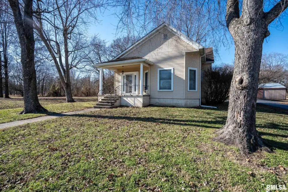 Lovingly owned by the same family for over 50 years, this solid oak-built home is full of character, craftsmanship, and what buyers love to hear: great bones. The large covered front porch offers peaceful views of the farm fields beyond. Inside, the spacious living room impresses with dark wood ceiling beams, a brick accent wall, antique light fixtures, floating wood shelves, and oversized windows that flood the space with natural light. The home offers 2 generously sized bedrooms and 2 bathrooms, each bedroom featuring direct bathroom access. Bathrooms showcase unique details like a stone accent wall and built-in vanity space. The inviting kitchen features a custom porthole window, ample cabinets and counter space, a brick island with built-in stove/oven, pantry closet, and new gray laminate flooring. Doors lead to a new back deck, plus easy access to a large attic ready to be finished and a full, dry unfinished basement perfect for storage. Outside you’ll find a large pole barn, detached garage, and plenty of parking. With 2.5 wooded acres and 7.5 open acres, this legacy property offers the perfect blend of privacy and usability. Call today for a showing!