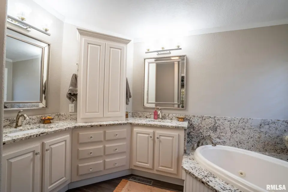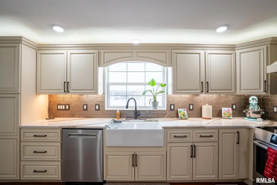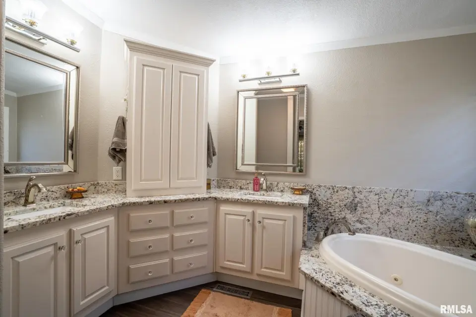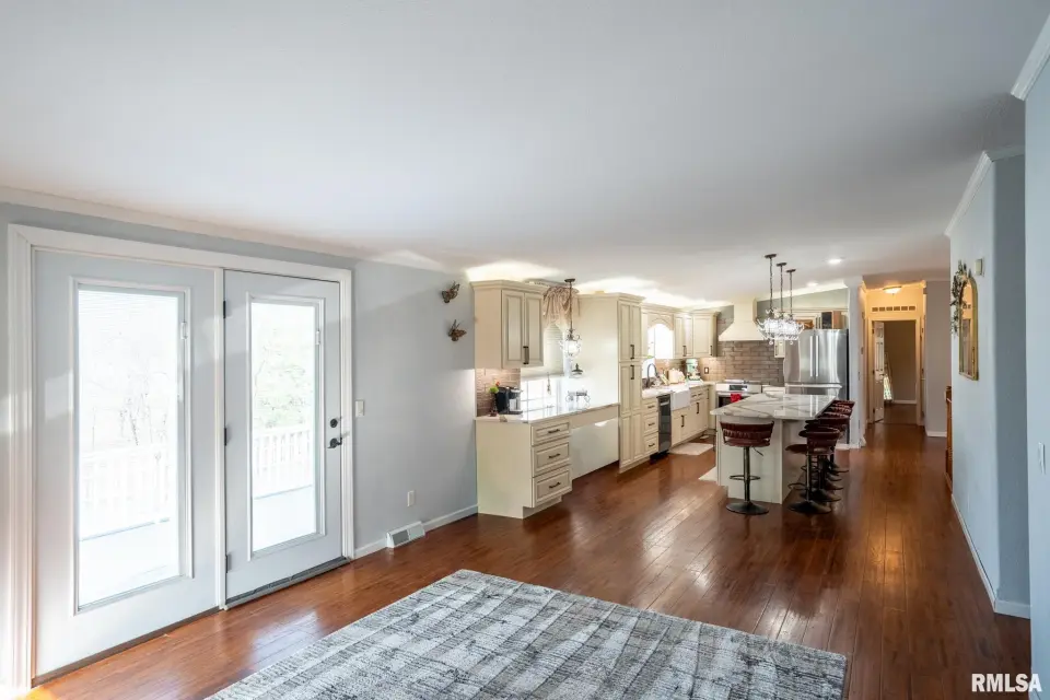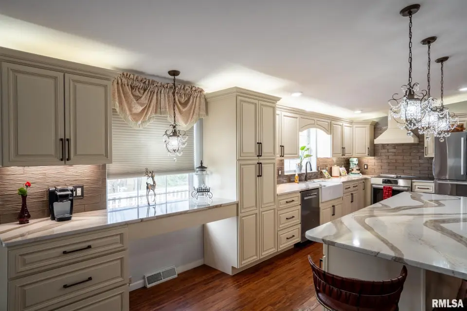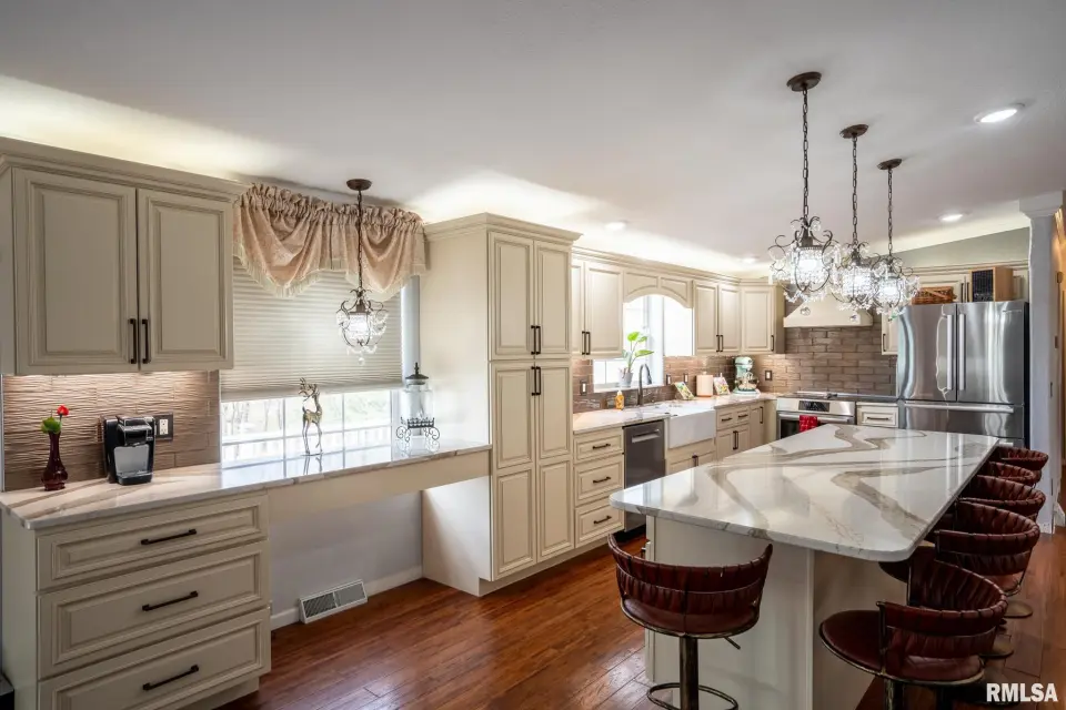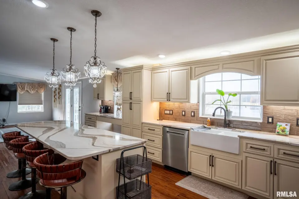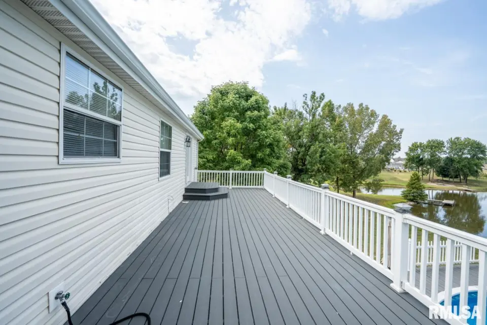 Every inch of this property blends luxury, comfort, and outdoor living at its best. Step through the foyer into the open dining area that flows effortlessly into the newly remodeled 2025 kitchen-complete with quartz countertops, sleek new appliances, a farmhouse sink, a massive island, and even a built-in desk space. The custom cabinetry and modern light fixtures tie it all together with elegance. Gorgeous hardwood floors lead to the spacious living room and three main-level bedrooms, including a primary suite that feels like a spa getaway. The en suite bathroom boasts dual vanities, a jetted soaking tub, and a stunning tiled walk-in shower. Downstairs, the fully finished basement offers even more living space with two bedrooms, a second kitchen,a full bath, and direct walk-out access to the patio and sparkling above-ground pool. Enjoy morning coffee or evening sunsets from the brand-new composite balcony overlooking the water. With a two-car detached garage, storage shed,adorable playhouse, and lush mature trees surrounding the property, this home truly has it all. Have peace of mind with a brand new roof and water heater. Whether you're entertaining, relaxing, or lakeside lounging, this is the dream waterfront lifestyle you've been waiting for! Call today for a showing!