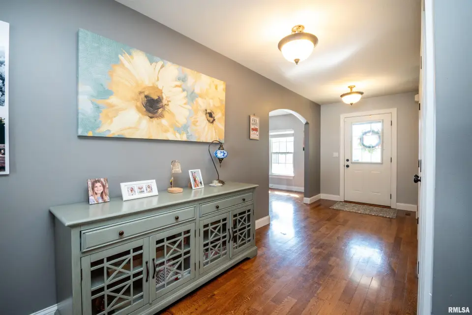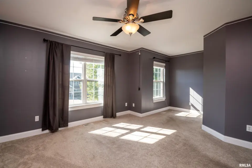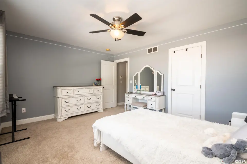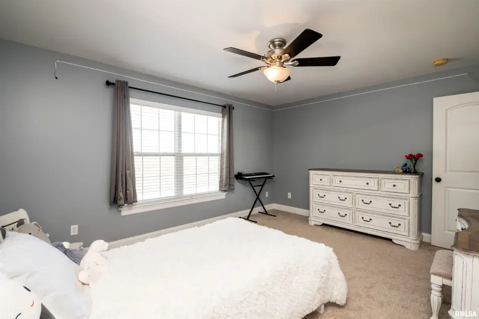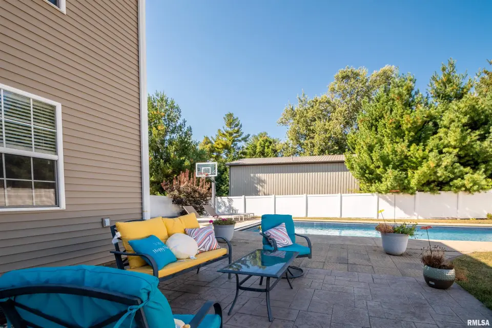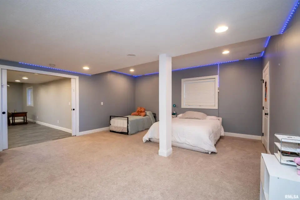 A welcoming foyer opens to both a formal dining room and a spacious living area highlighted by a cozy gas-log fireplace. The kitchen features stainless steel appliances, granite countertops, and an eat-in breakfast bar—ideal for casual dining or entertaining. The main floor primary suite offers a private retreat with a large walk-in closet, dual-sink vanity, soaking tub, and separate shower. A generous laundry room, conveniently located between the kitchen and 3-car garage, adds everyday practicality. Upstairs, you’ll find three oversized bedrooms, each with its own walk-in closet, along with a large shared full bath. The finished basement extends your living space with a recreation area and family room featuring ceramic tile flooring. It also includes a very large fifth bedroom with egress window and walk-in closets, a full bath, and great storage options—including an 11x4 storage room and separate utility area. Step outside to your private backyard oasis showcasing a 37x15 in-ground pool with automatic safety cover, stamped concrete patio, and 6-ft privacy fence. This home w/ side-load garage sits on a spacious corner lot, enhancing both curb appeal & convenience.