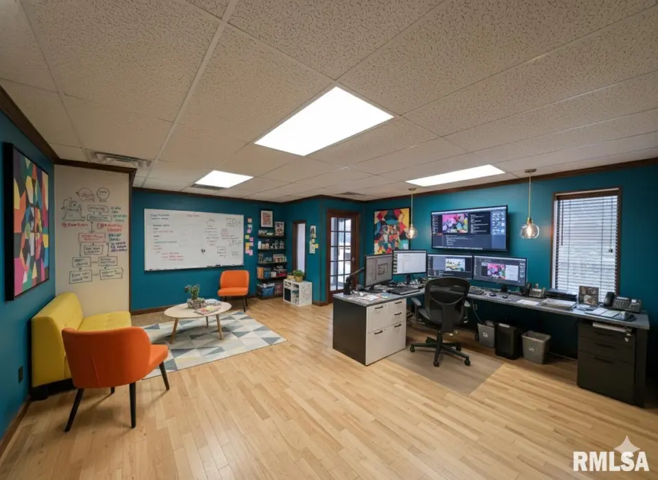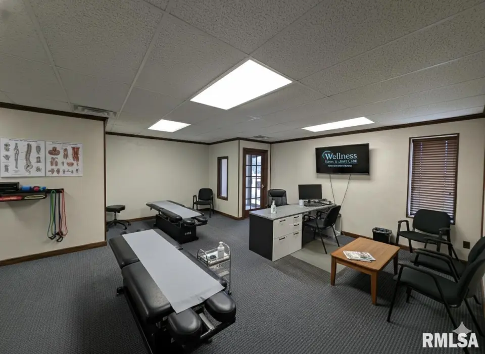 ft. office condo in North Peoria features 2 private offices, a large conference room or workroom, storage room, kitchenette and restroom. This office is conveniently located just off of University Street and Pioneer Parkway. The 16 suite complex (Parkway Plaza) has annual association fees of $2,142.86, paid semi-annually, that include water, garbage, snow removal and lawn care. This unit is also available for lease at $1800 per month plus utilities and could have a lease with purchase option. Association docs available upon request. Final four photos are virtually staged/altered.