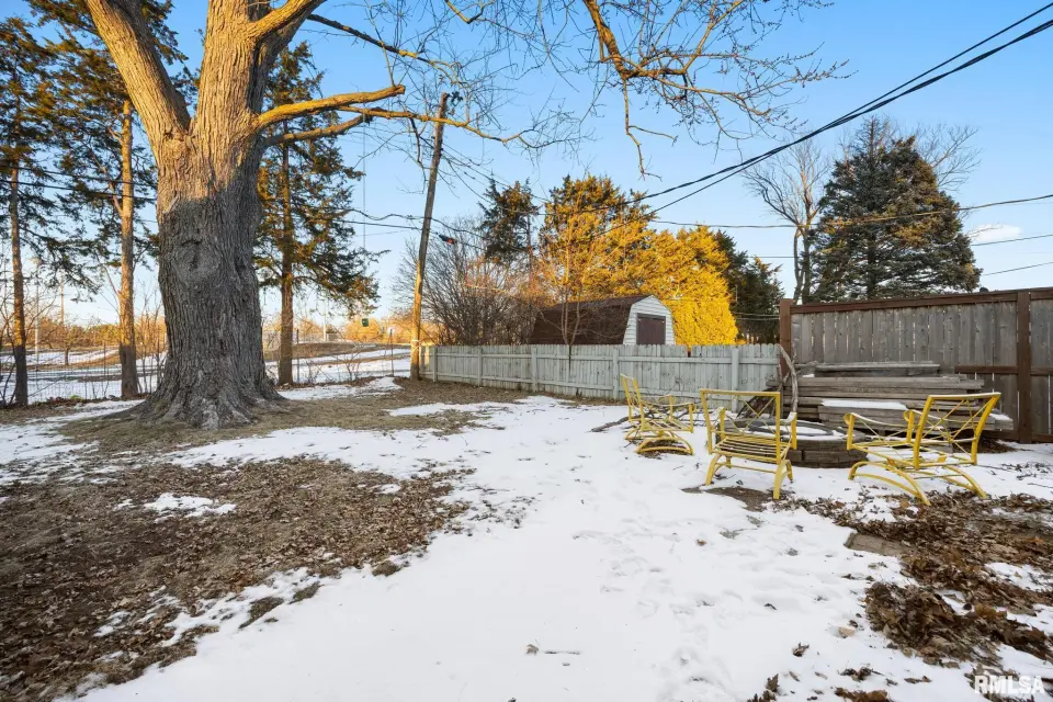 The kitchen is open to both the living room and the combined formal dining/family room. The slider door access to the back patio equipped with a fenced yard and fire pit.