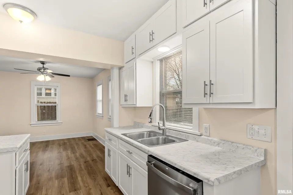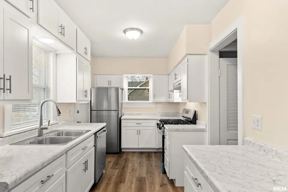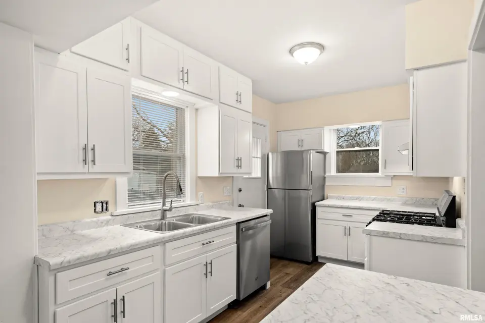 Fresh paint and brand new flooring throughout the main, upper, and finished lower-level flex space create a bright, cohesive feel. Upstairs features a beautifully remodeled full bath, while French doors lead to a covered porch perfect for relaxing or hosting. Major updates include roof tear-off (2024), new windows (2025), all new flooring (2025), plus gutters, driveway, fixtures, lighting and hardware. Flexible layout works for homeowners or investors alike. Fireplace never used and not warranted.