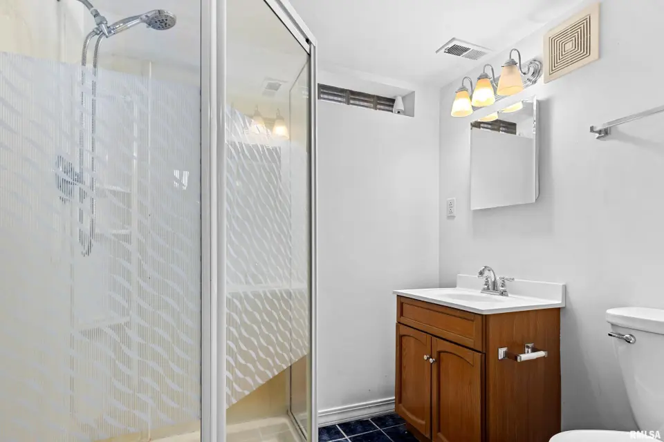 The spacious upstairs primary bedroom features a generous walk-in closet. The partially finished basement adds extra living space with a rec room, full bath, and plenty of storage, plus a dewatering system and sump pump for peace of mind. Enjoy outdoor living with both a deck and patio—perfect for relaxing, entertaining, or summer grilling. You will have plenty of room with the oversized 2-stall detached garage for parking and projects.Recent updates include a new furnace and A/C (2025), new ceiling fans throughout, new refrigerator and stove (2025), and a refinished main-level tile shower (2024). Move-in ready and thoughtfully cared for—this home is a must-see!
