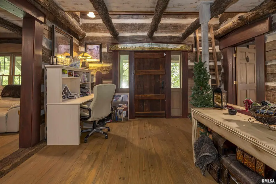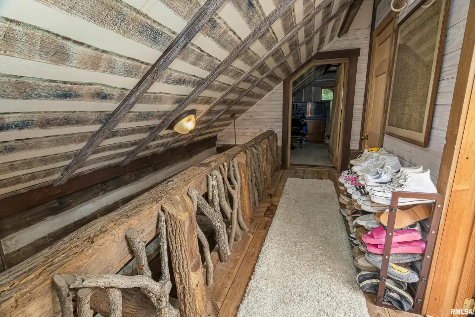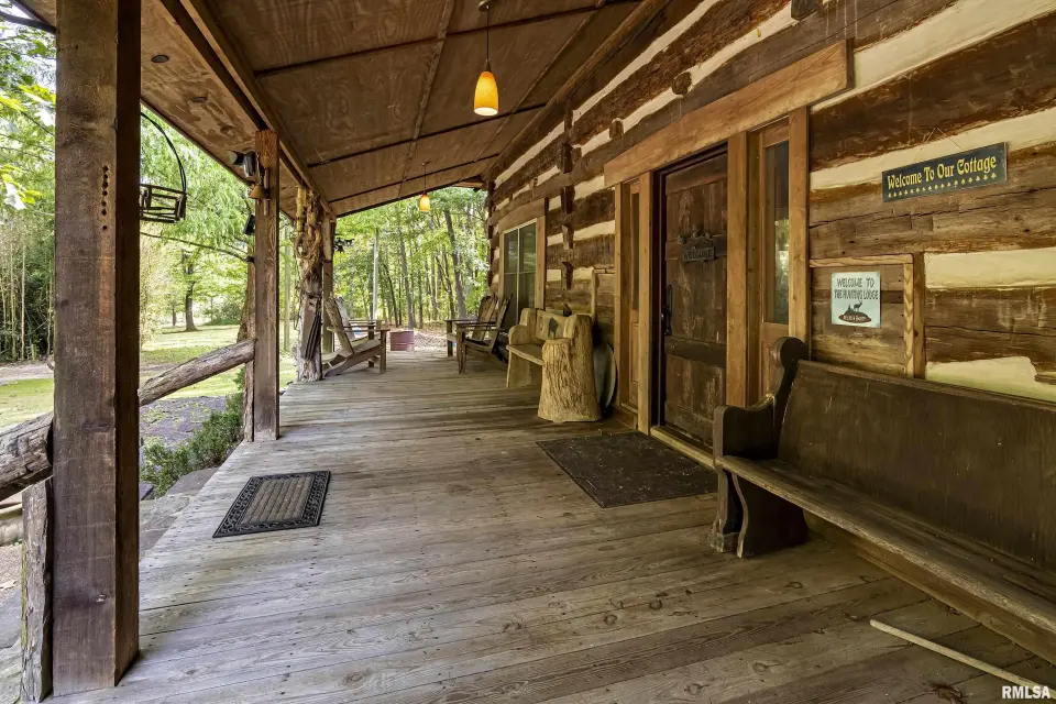 There are 3 bedrooms and 2 full baths. There are front and back porches that are each large enough for your friends and family to gather and spend the day. The cabin is sitting on 7+ acres that are located less than 1 mile from town. You will never know it while enjoying your seclusion. There is a full basement, main level, and second floor. One side of the property is bordered by a creek and three sides are bordered in woods. The center of the property has cleared areas so that you may enjoy a large yard and garden. This is a very unique home and a unique opportunity to call it yours.