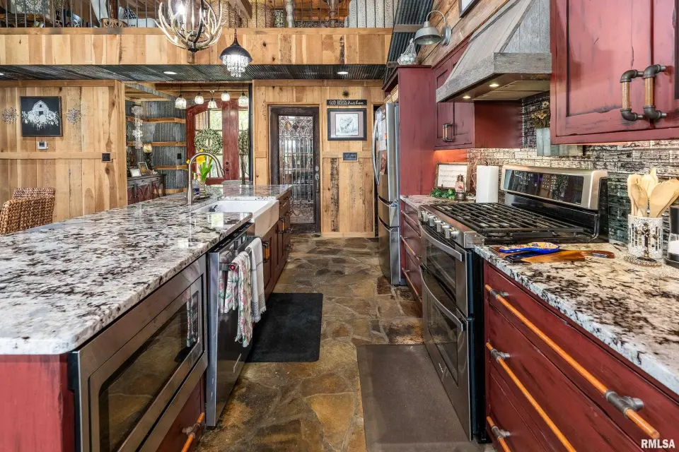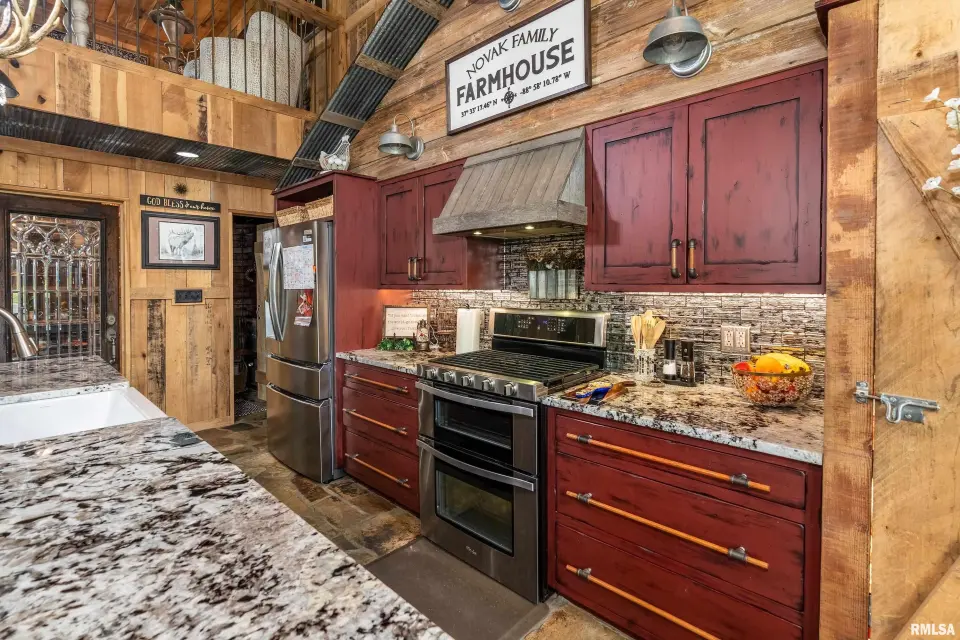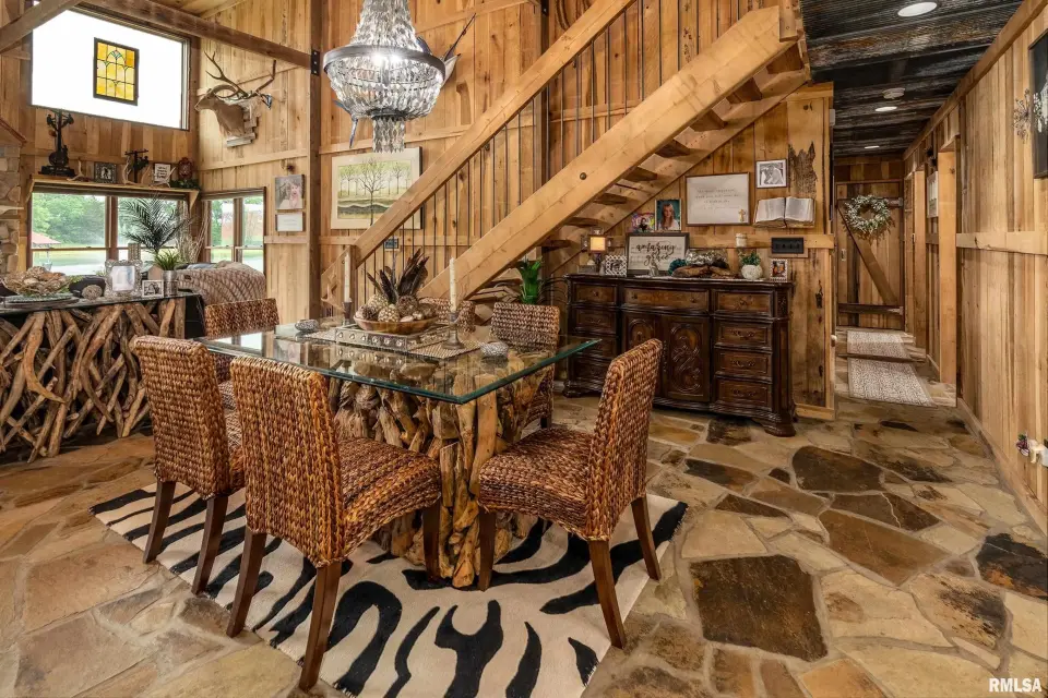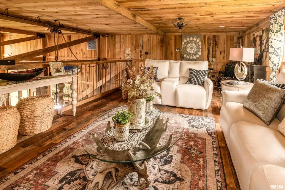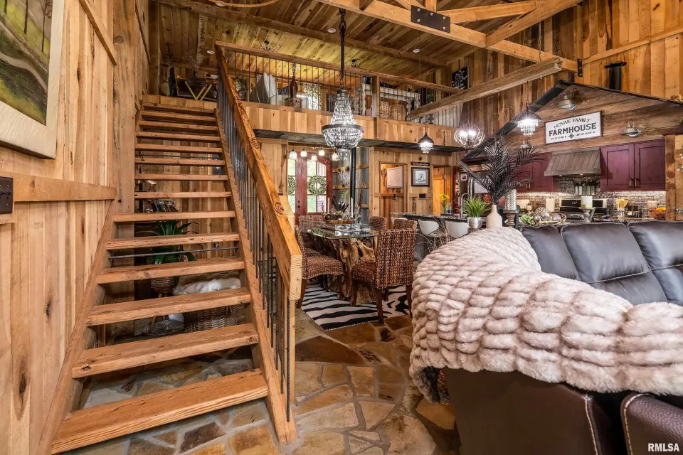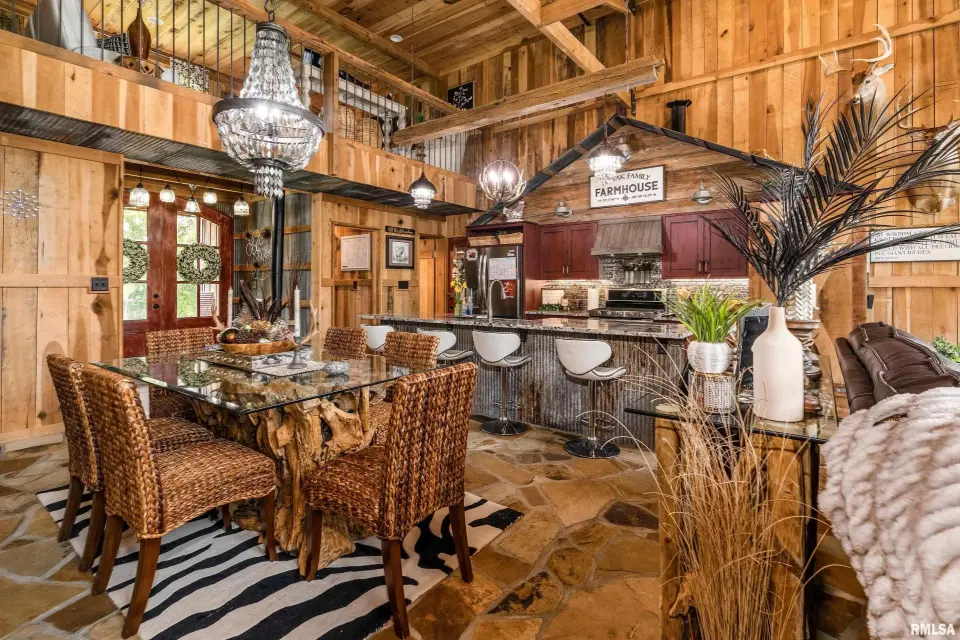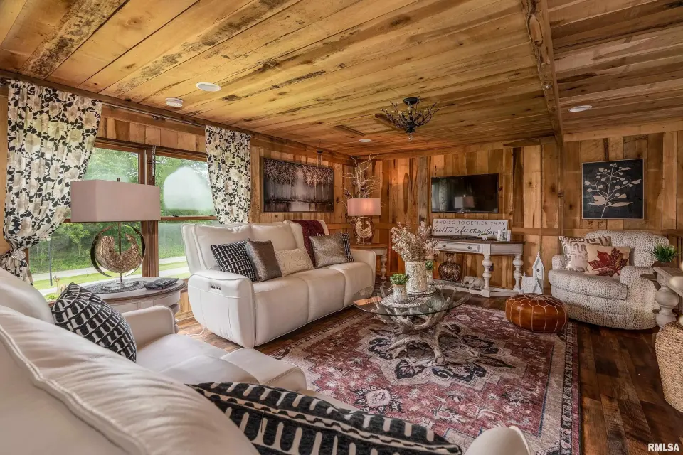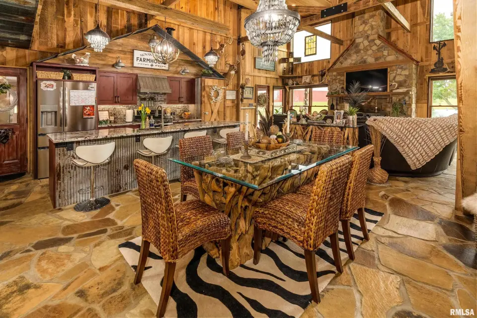 Inside you will find a sandstone wood-burning fireplace and granite surfaces. There are 3 bedrooms and 2.5 baths, plus a large loft as bonus space. The heart of this home is open-concept with an abundance of natural light. Outside the family room is a covered patio and an inground salt-water pool which was constructed in 2023. Beyond the pool deck is a stocked pond, complete with dock and custom fountain. The pole barn consists of 3 separate sections, two of which are heated and cooled. The center bay was built for RV parking, hosting an oversized door and a full hook-up. There is an additional RV hook-up outside. It is impossible to list all of the amenities this property offers. Come see for yourself!