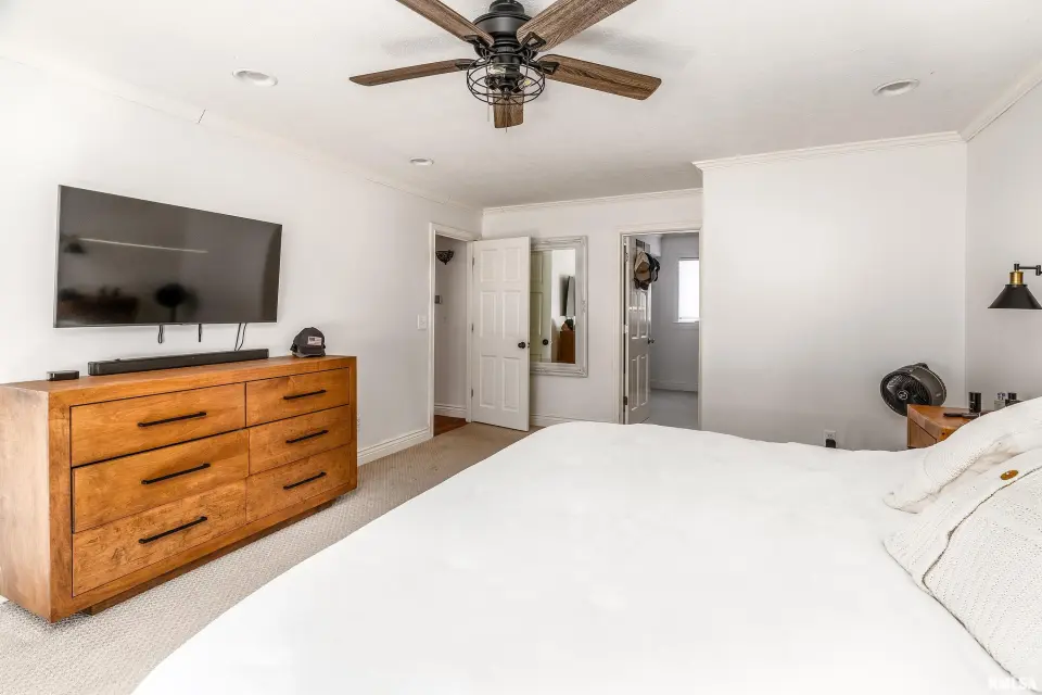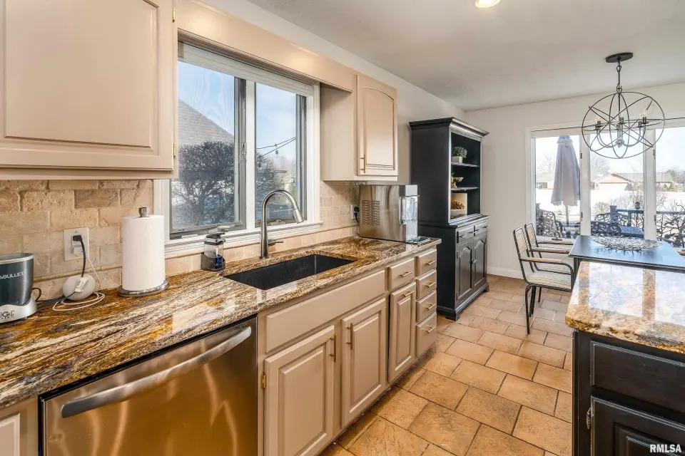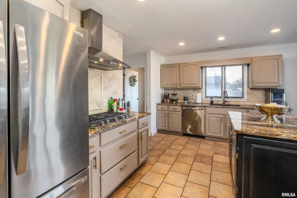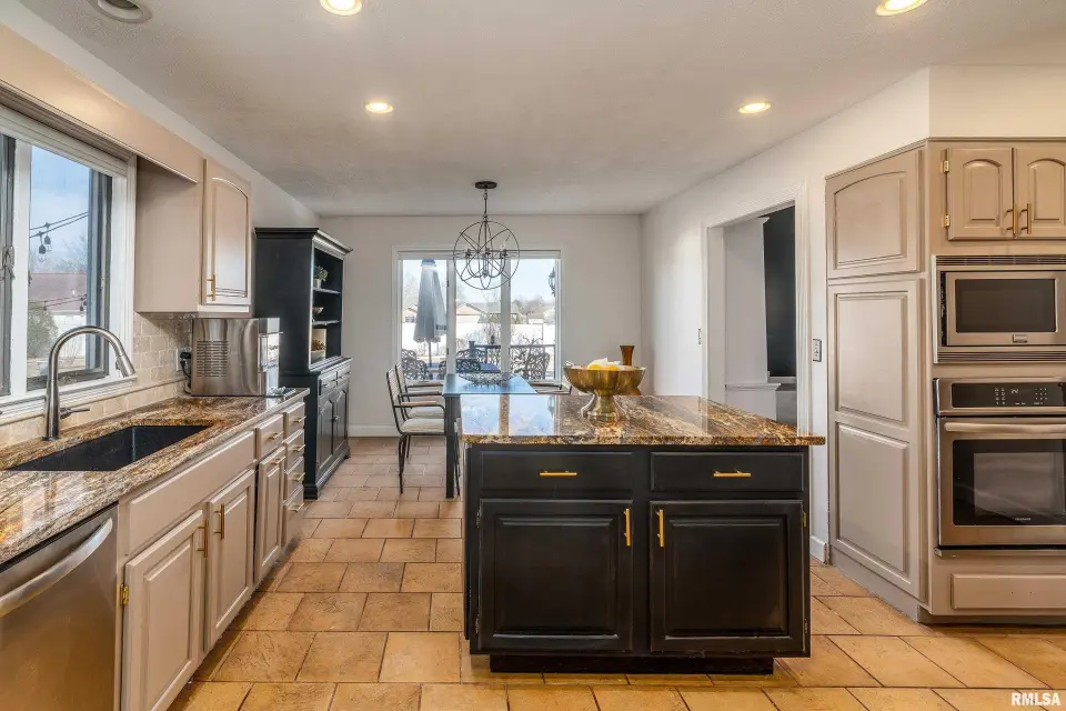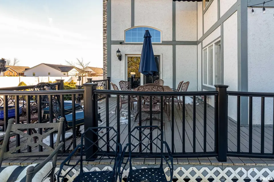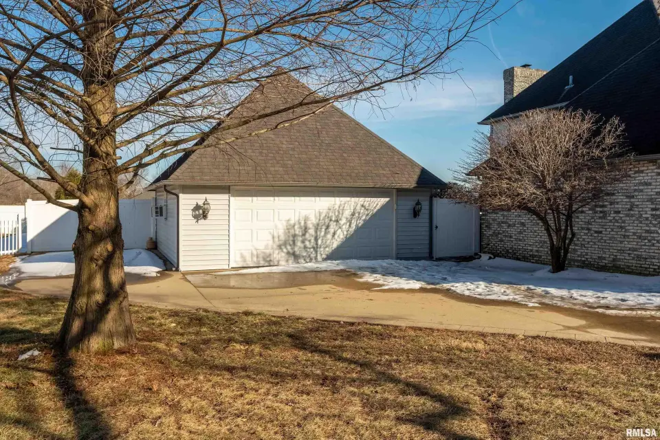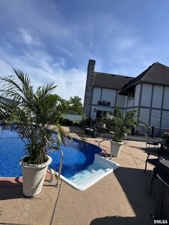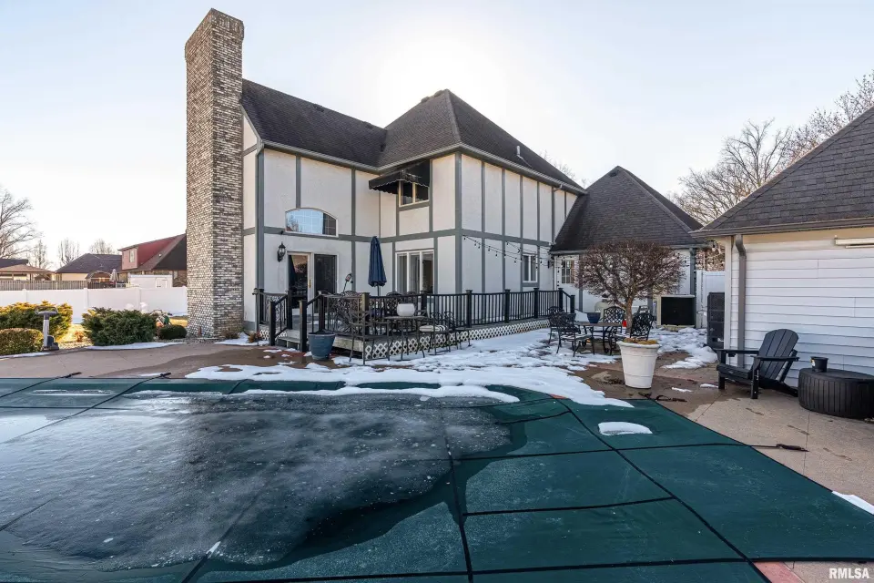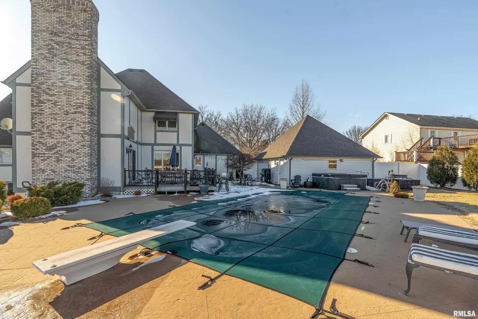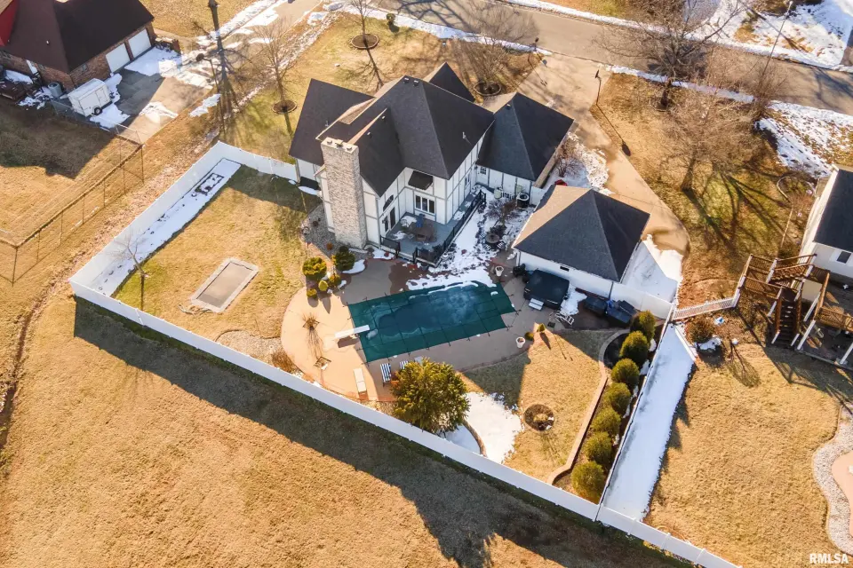 Designed for modern family living, the home features a full smart-home system including smart locks, thermostat, security cameras, and automatic blinds for convenience and peace of mind. The kitchen is equipped with Golden Thunder granite countertops, a stainless gas cooktop with overhead ventilation, and a full suite of stainless steel appliances, all three years old or newer. The main living area features a remote-controlled gas fireplace, creating an inviting gathering space. The backyard is built for enjoyment and entertaining, featuring a 16x32 inground saltwater pool with a two-year-old liner, electric heater and chiller, LED pool lighting, and full Pentair automation. Additional outdoor features include a hot tub, inground trampoline, and approximately 320 feet of white vinyl fencing with two pedestrian gates and one oversized double gate, offering privacy and functionality. A detached two-car garage provides additional value with heat and air conditioning, a built-in bar and refrigerator, making it ideal for entertaining, hobbies, or extra storage. Major mechanical updates include a six-year-old upstairs HVAC system and two water heaters approximately one year old. This property offers a rare combination of space, privacy, smart-home technology, resort-style amenities in a desirable location.