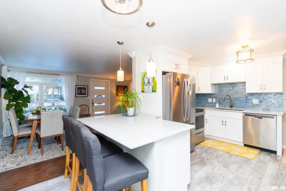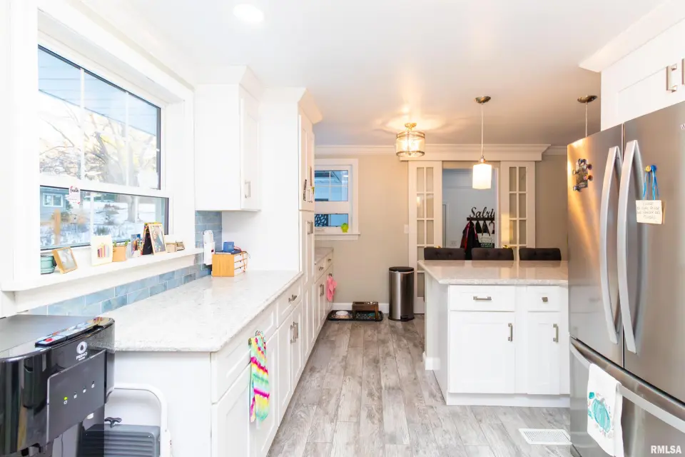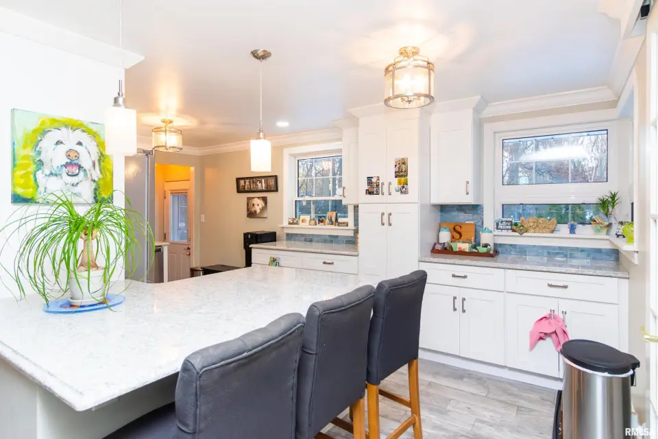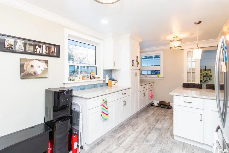 1953 Finished SF with an open floor plan , full partially finished basement & heated two car attached garage * Remodeled kitchen in 2021 with Amish made white cabinets, granite counter tops, backsplash, appliances, tile flooring, light fixtures & breakfast bar * Also completed in 2021: New furnace, AC, whole house generator, garage door opener, garage heater, exterior doors, interior doors on main floor, sump pump, original hardwood floors refinished, insulation in attic & garage, added electric wall-mounted fireplace in Sunroom, backyard pet fencing, new mailbox structure, landscaping , sidewalk to back of garage ** 2023 4 new windows on SW corner of the house, completely remodeled main floor bathroom & exterior painted *** 2024 New roof, gutters & leaf filter system new front porch & back stoop handrails garage door **** 2025 Wood plank flooring in living/dining area & new water heater * Approximately a mile to the rock island trail & Peoria Heights restaurants and shops