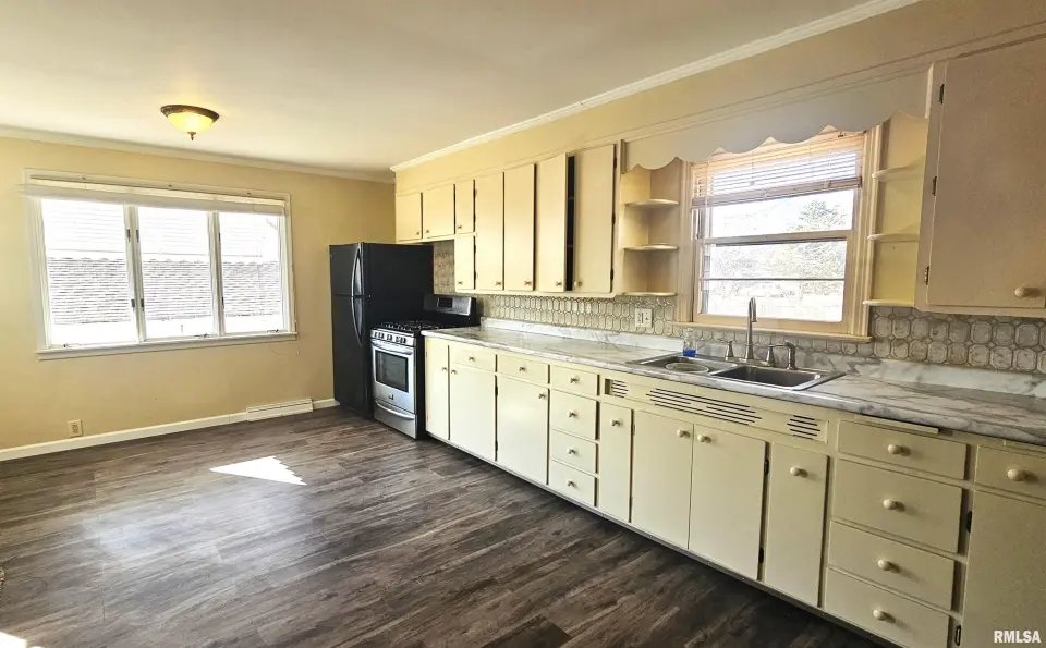 The main-floor bedrooms feature original hardwood floors, and you’ll love the historic glass doorknobs plus a few quaint vintage wall/ceiling light fixtures still in place. This home offers 3 bedrooms and 2 full baths, plus a basement bathroom setup (toilet + shower) — so there’s space and flexibility for real life. Upstairs features a private suite vibe with a full en suite bath, and the layout gives you room to spread out with approximately 1,428 sq ft on the main level + 273 sq ft upstairs, plus basement space. The main floor includes laundry and tons of storage, and the kitchen is packed with cabinets — plus two built-in pull-out cutting boards (such a fun, old-school feature). Need a fenced yard? You’ve got it. Sitting on two lots, the fenced-in backyard is HUGE — perfect for pets, play, gardening, or hosting friends. The detached 2-car garage is extra deep, giving you the storage/workshop space everyone wants. Big updates are already handled: roof replaced in 2021 and HVAC updated in 2018. And bonus — the basement is tall (no ducking!) and includes a washtub-style sink, making it super functional for projects, storage, or a hobby zone. Must-see in JC — and only minutes to Marion.