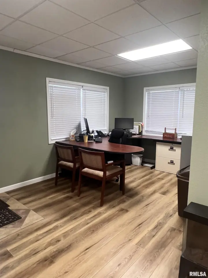 The professional office space is suitable for administration, customer reception or management. Ample on-site parking and yard space. The garage spaces are suitable for storage, operations, vehicles, or equipment.