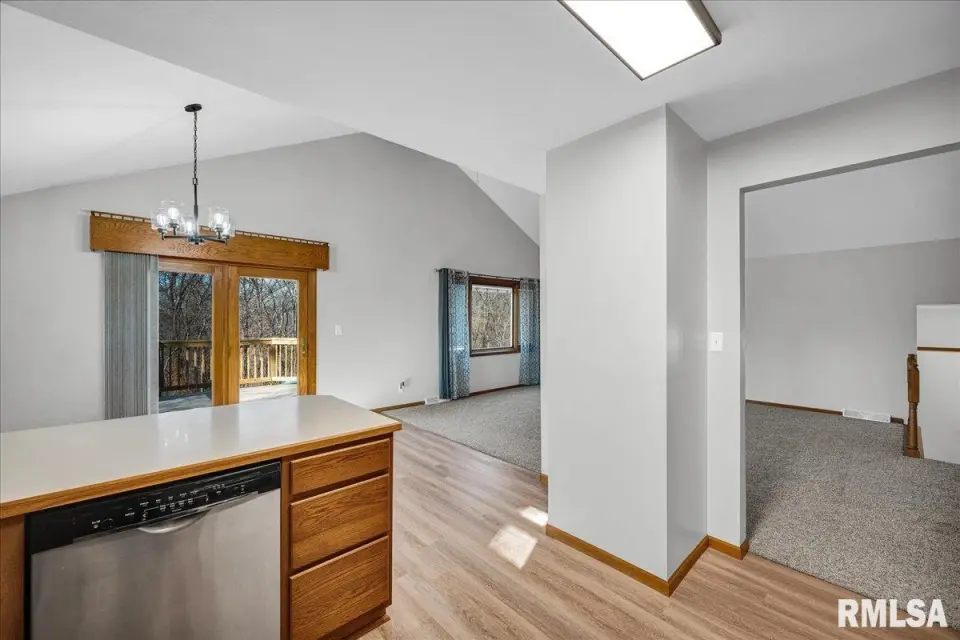 Located just three homes from the pool, clubhouse & everyday amenities. From the moment you step inside, natural light fills the home, highlighting the open, inviting layout. The main level features three well sized bedrooms with hardwood floors, including a primary suite with a private bath. Recent updates bring a fresh, modern feel with new carpet in the great room, hallways and stairs, LVP flooring in the kitchen and dining areas, updated light fixtures in the entry, dining, and primary bedroom, as well as fresh paint throughout, making the home truly move-in ready. The living and kitchen spaces flow effortlessly, ideal for both everyday living and entertaining. Outdoors, a sprawling three-tier deck system—including a new upper deck and a new walk-out lower-level deck—creates the perfect setting to unwind and take in peaceful views. The lower level adds versatility with a cozy fireplace and kitchenette, offering an ideal space for guests, gatherings, or multi-generational living. A 2-stall attached garage adds convenience, while new shingles, gutters, and gutter guards (2023) provide lasting peace of mind. Thoughtful updates, serene surroundings, and an unbeatable location, this home delivers a lifestyle that’s easy to fall in love with!