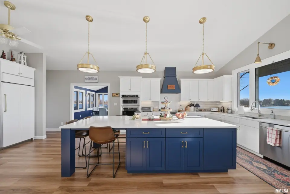 This isn’t simply an updated house, it was completely remodeled down to the studs in 2021, thoughtfully reimagined w/open living spaces & high-end finishes throughout. The heart of the home is a chef’s kitchen that flows seamlessly into the living & informal dining areas, all framed by oversized windows showcasing breathtaking views of Little Swan Lake. A massive island, premium appliances, & abundant cabinet & counter space make cooking for a crowd easy while staying connected to guests. For formal occasions, the separate dining room offers its own stunning, framed lake view, a perfect setting for memorable dinners. Step outside to the expansive deck w/panoramic water views, or head down to the shoreline where a custom patio & fire pit create an ideal space for sunset drinks. Located in a quiet cove w/385 feet of private shoreline, it’s also perfect for docking your boat. A standout feature is the dual boathouse setup: one for storage & the other fully finished as an entertainment space w/bar & family room right at the water’s edge. The walk-out lower level adds even more flexibility w/a large family room, exercise room, bedroom, full bath, & a second full kitchen, ideal for hosting guests. The primary suite feels like a private retreat w/its own laundry, ensuite bath, & incredible lake views. New roof, dual furnaces, & A/C units 2021.