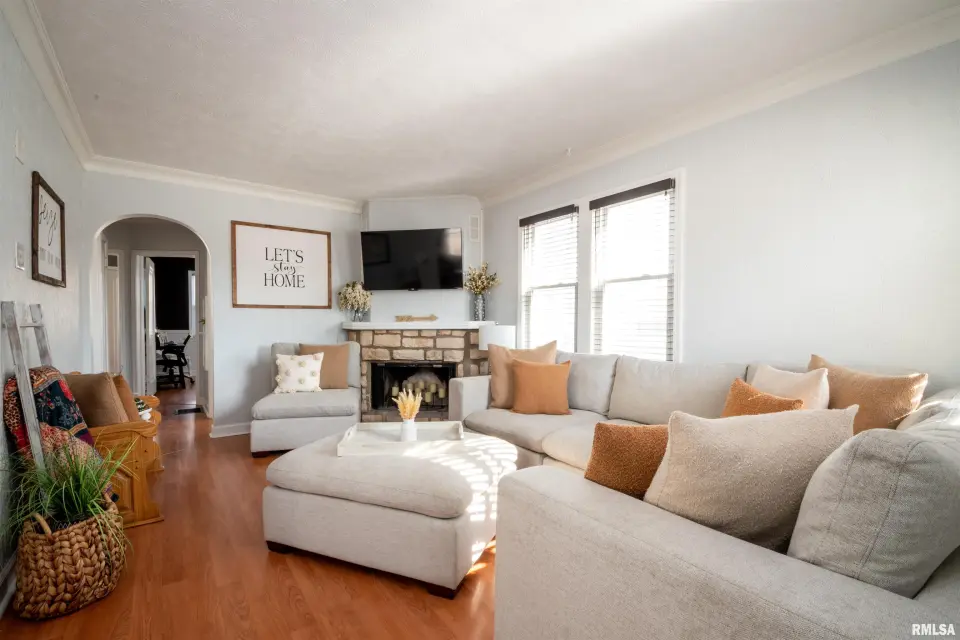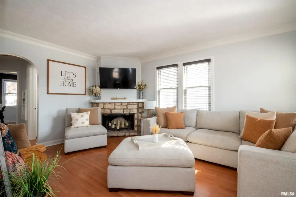 1.5 STORY LAYOUT WITH CLASSIC ARCHITECTURAL FEATURES SUCH AS ARCHED DOORWAYS AND BUILT-IN SHELVING GIVING IT A TRADITIONAL CHARM. PRIMARY BEDROOM INCLUDES AN ENSUITE BATH AND A WALK-IN CLOSET WITH BUILT-IN DRESSERS. WOOD BURNING FIREPLACE ADDS CHARACTER AND WARMTH. PARTIALLY FINISHED BASEMENT WHICH IS SUITABLE FOR A MEDIA ROOM AND BAR SETUP. HVAC REPLACEMENT IN '22, EXTERIOR DOORS IN '22, AND GARAGE DOOR AND OPENER IN '24.