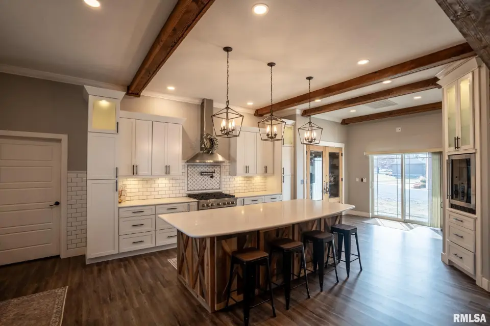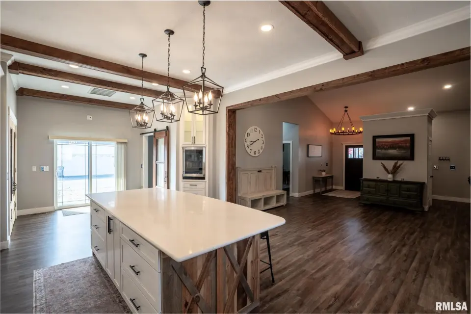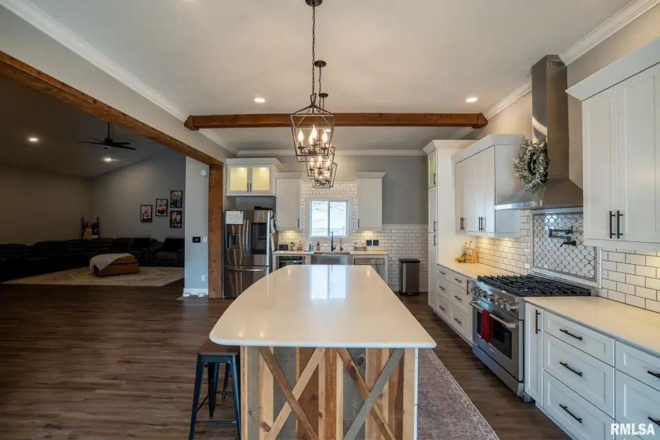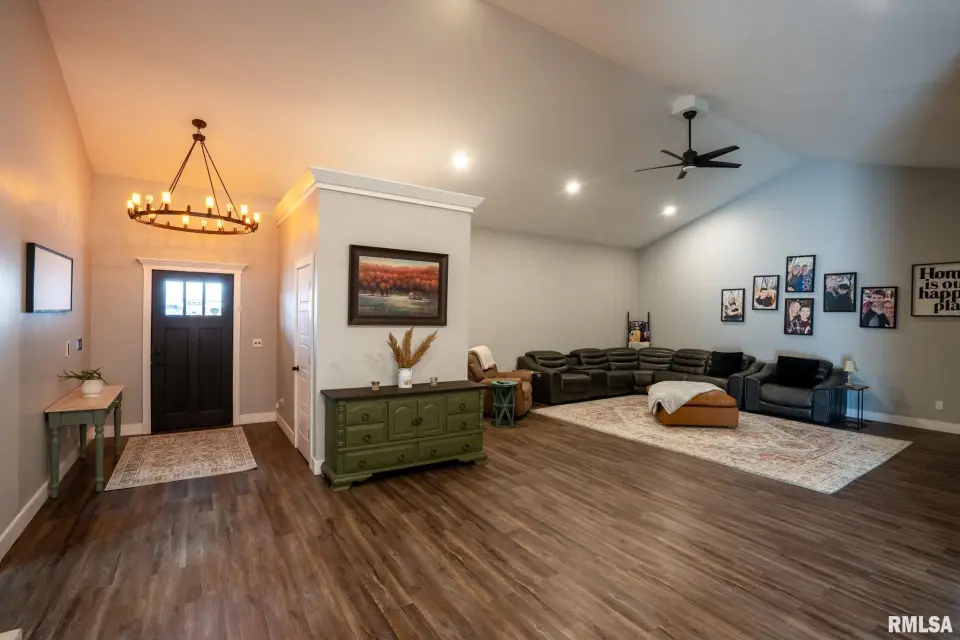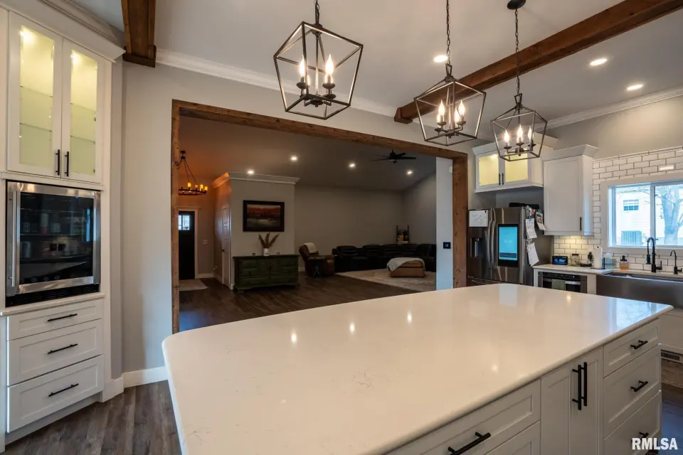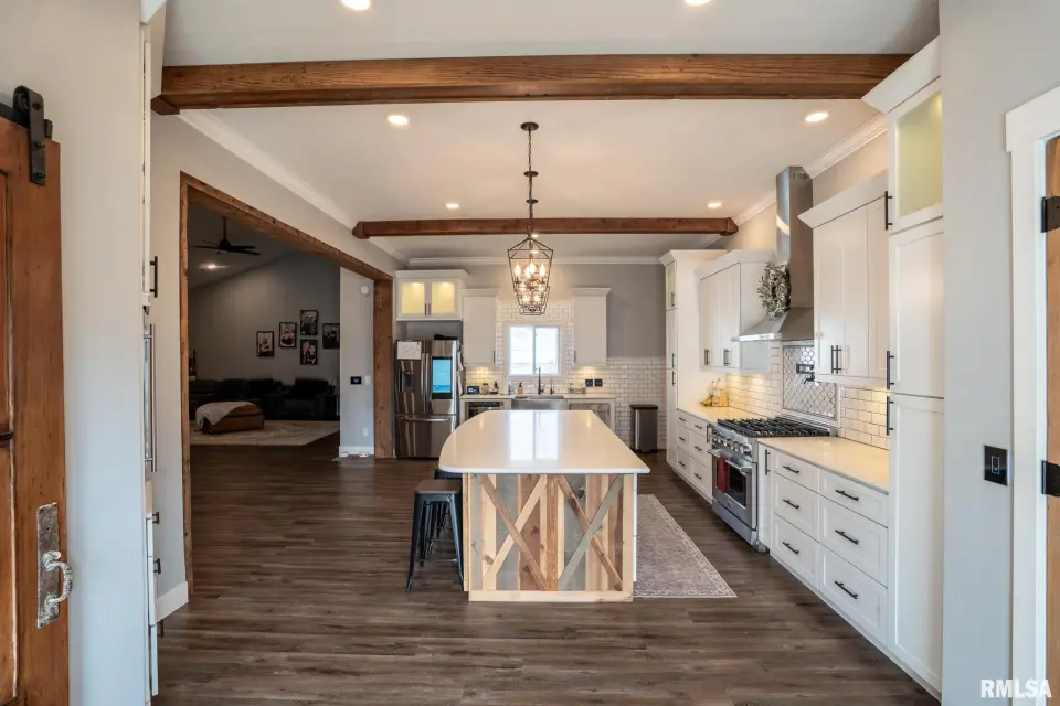 Designed for modern living, this fully integrated home offers seamless automation, enhanced security, and impressive energy efficiency, all controllable at the touch of a button. Striking curb appeal and refined finishes welcome you inside to an expansive, light-filled open layout. Soaring ceilings and a dramatic floor-to-ceiling fireplace anchor the living space, while refurbished locally sourced wood adds warmth and character. The kitchen is the heart of the home, featuring a grand island, smart refrigerator, filtered water, under-cabinet lighting, and a dedicated mini beverage fridge. A spacious walk-in pantry offers abundant shelving and numerous outlets for ultimate convenience. Smart thermostats, alexa smart home device, automated lighting, and remote-access security systems are seamlessly integrated throughout, elevating comfort, efficiency, and peace of mind. The luxurious primary suite provides a private retreat with a large bathroom & walk in closet, complemented by two additional bedrooms and 2.5 beautifully finished bathrooms. Blending innovation with timeless elegance, this exceptional Carterville property delivers sophisticated design, intelligent technology, and elevated everyday living. Call today for a showing!
