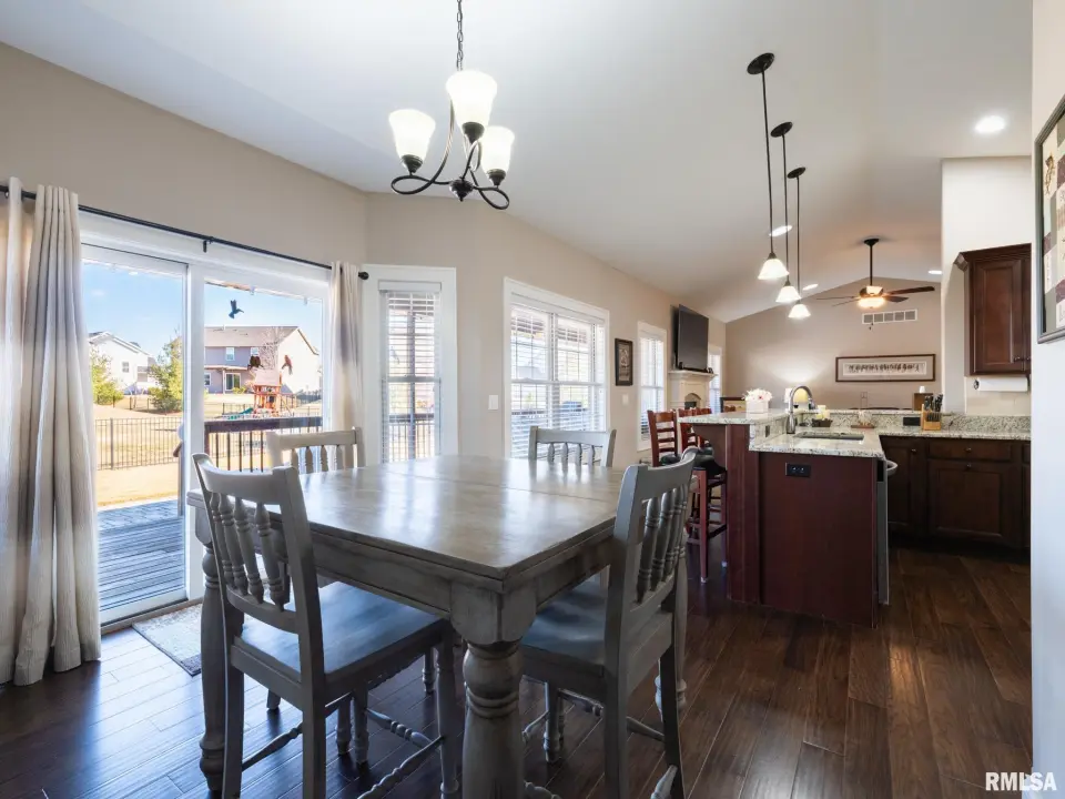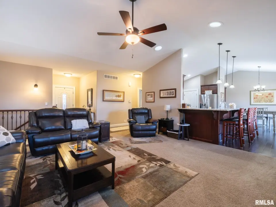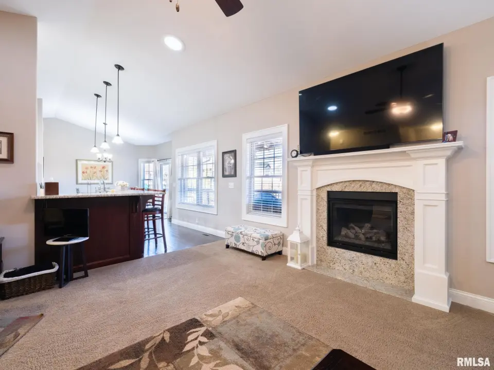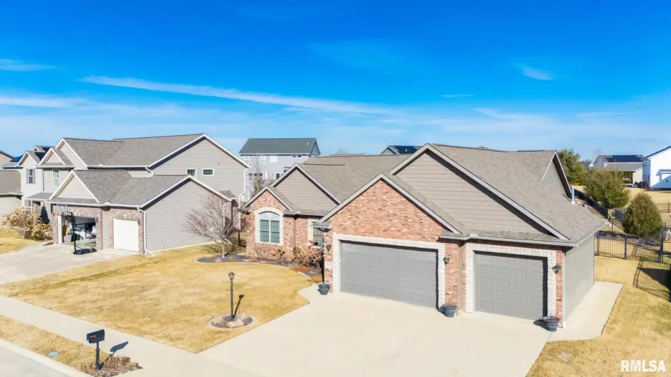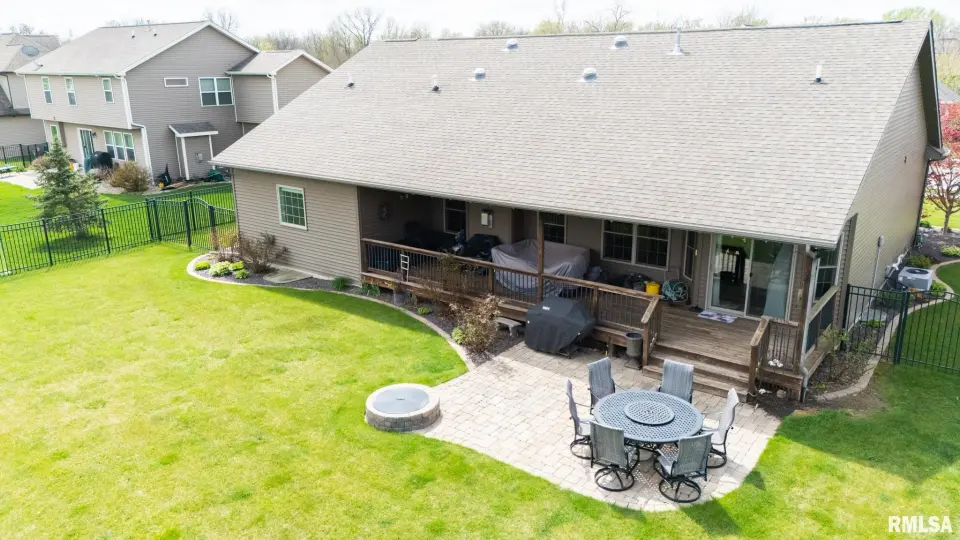 This custom built home features an inviting open floor plan including the vaulted great room w/ gas fireplace that is open to the functional eat-in kitchen w/ gorgeous granite countertops, stone tile backsplash, breakfast bar and dining space. Split bedroom design with master suite wing highlighted with a spa bath complete with 2 walk-in closets & jet tub. Great sized laundry/mud rm w/ half bath off the heated oversized 3 car garage! 2 additional bedrooms & full bath complete the main living space. The finished lower level offers plenty of entertaining space, 4th bedroom, another full bath & flex rm perfect for office or exercise. Plenty of storage space as well! The outdoors are a true oasis w/ expansive covered rear porch overlooking the fenced & irrigated yard w/ large patio & gas firepit! Built by Legend Homes, this beauty is better than NEW!