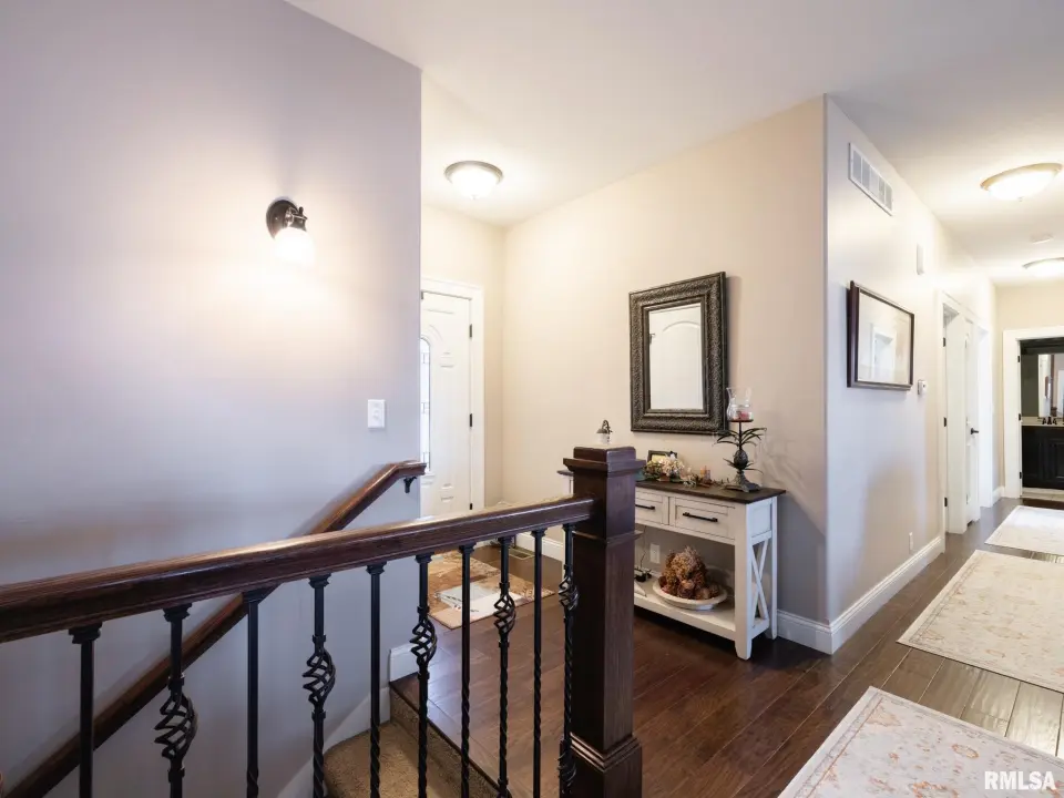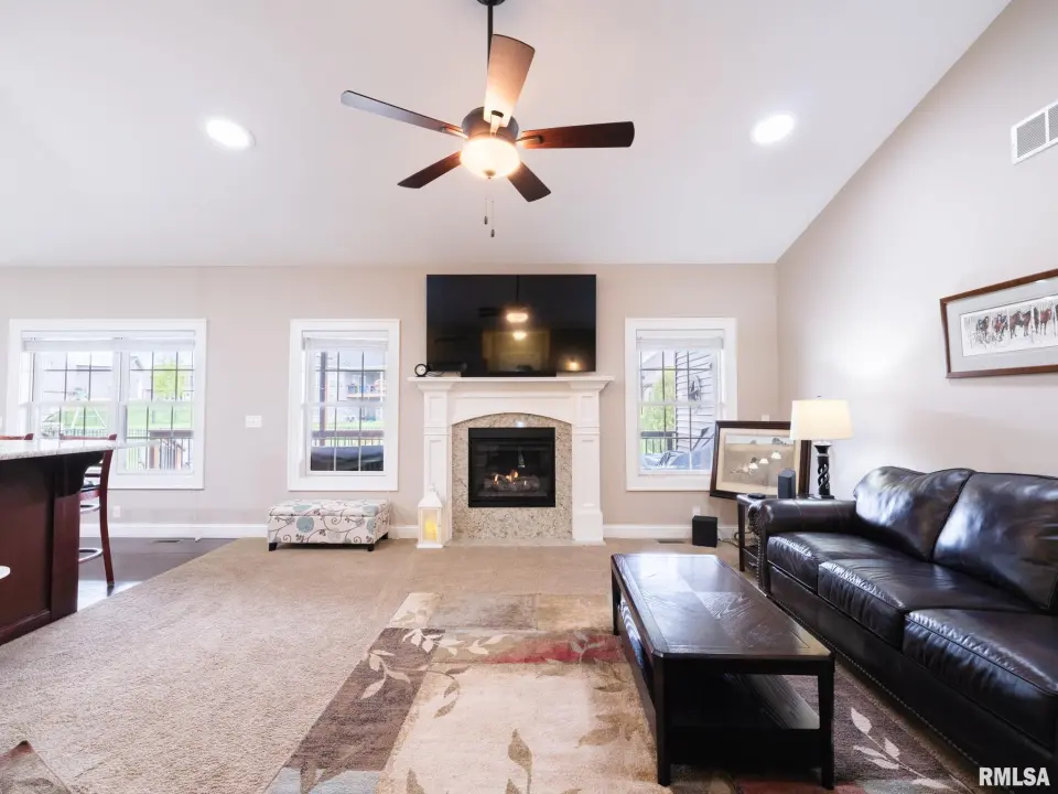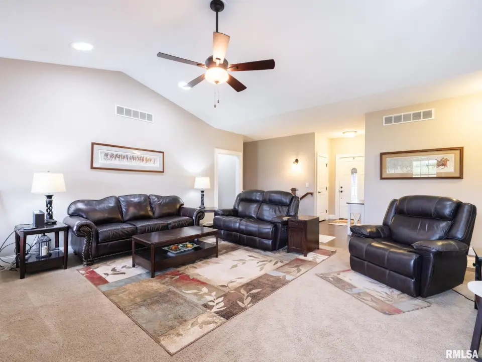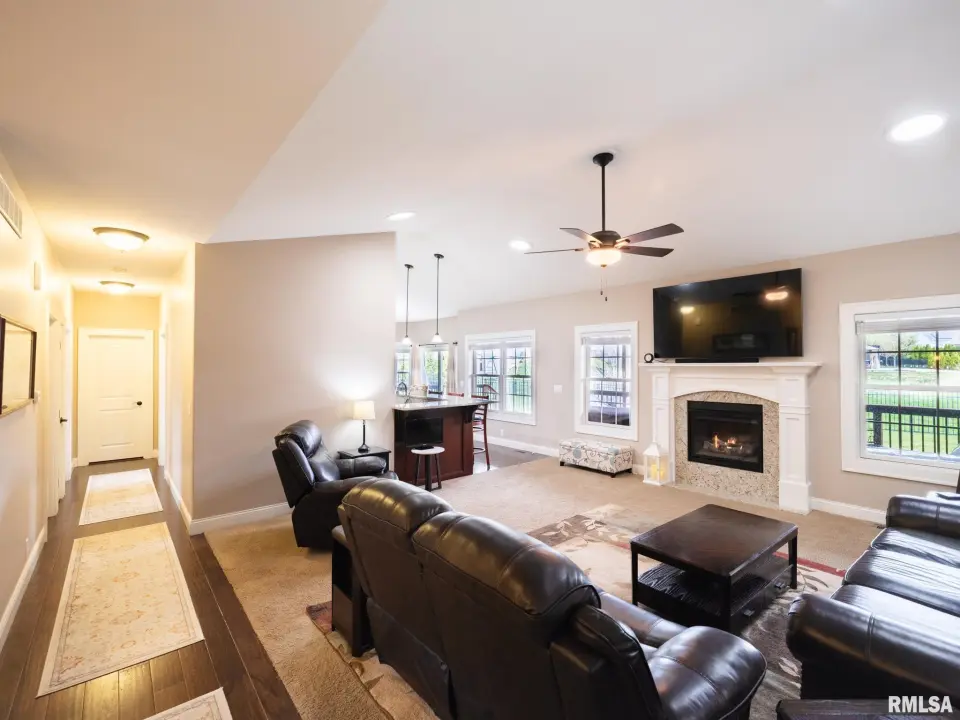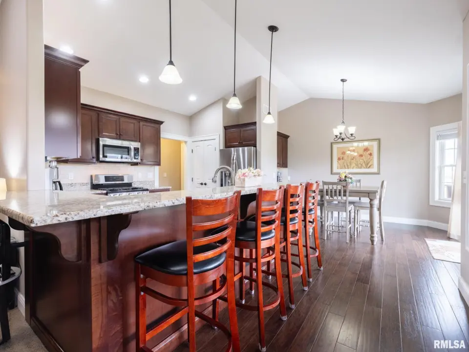 This custom built home features an inviting open floor plan including the vaulted great room w/ gas fireplace that is open to the functional eat-in kitchen w/ gorgeous granite countertops, stone tile backsplash, breakfast bar and dining space. Split bedroom design with master suite wing highlighted with a spa bath complete with 2 walk-in closets & jet tub. Great sized laundry/mud rm w/ half bath off the heated oversized 3 car garage! 2 additional bedrooms & full bath complete the main living space. The finished lower level offers plenty of entertaining space, 4th bedroom, another full bath & flex rm perfect for office or exercise. Plenty of storage space as well! The outdoors are a true oasis w/ expansive covered rear porch overlooking the fenced & irrigated yard w/ large patio & gas firepit! Built by Legend Homes, this beauty is better than NEW!