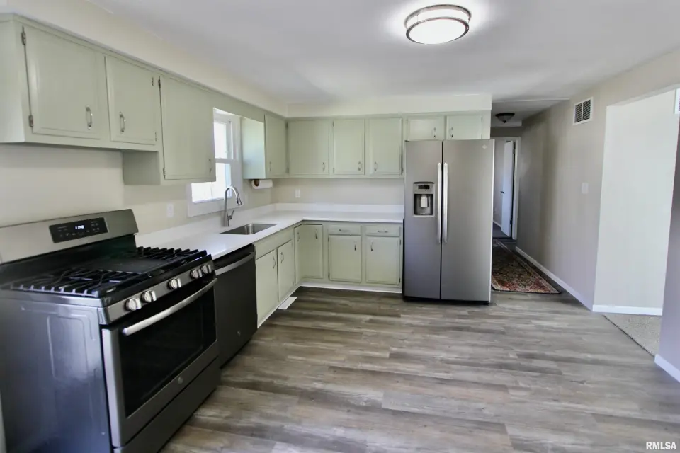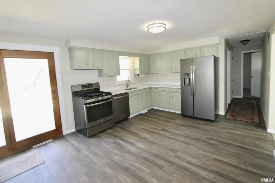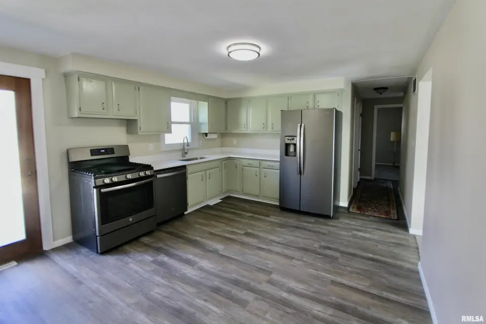 The freshly painted eat in kitchen is bright and inviting with new vinyl plank flooring, stainless appliances and built in shelving perfect for everyday living and entertaining! Just off the kitchen, enjoy outdoor living on the huge new deck overlooking the fenced backyard. The remodeled full bath adds modern appeal, while all three bedrooms feature new carpet and a fresh coat of paint. The finished walkout basement provides potential additional living space. Basement includes a utility sink, washer and dryer and freshly painted walls - ready for the new owner's personal touches. Step outside the walkout basement to a fenced in backyard, fire-pit and storage shed. An additional parking pad adds valuable off-street parking space. Additional 2026 updates include new siding, garage door opener and water softener. New windows in 2024.This adorable move in ready home is one you won't want to miss! Appliances remain but are not warranted.