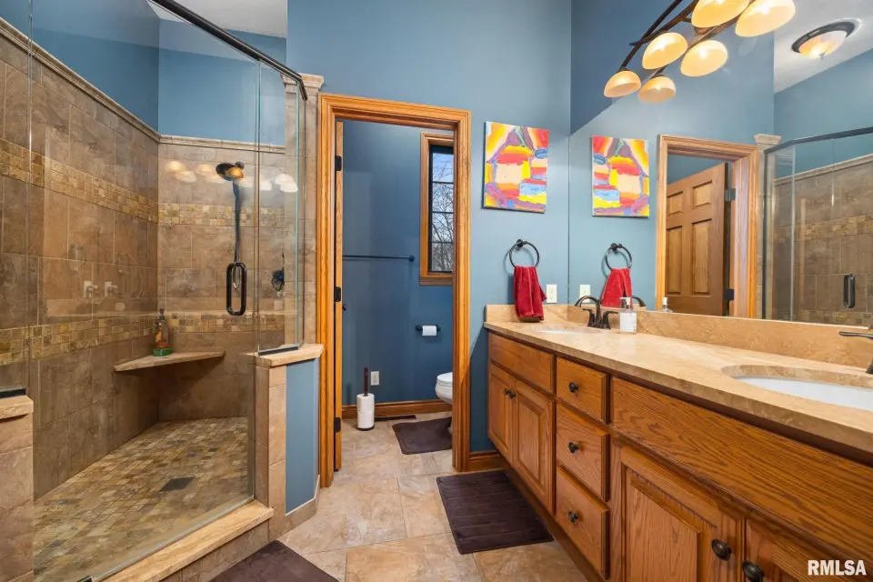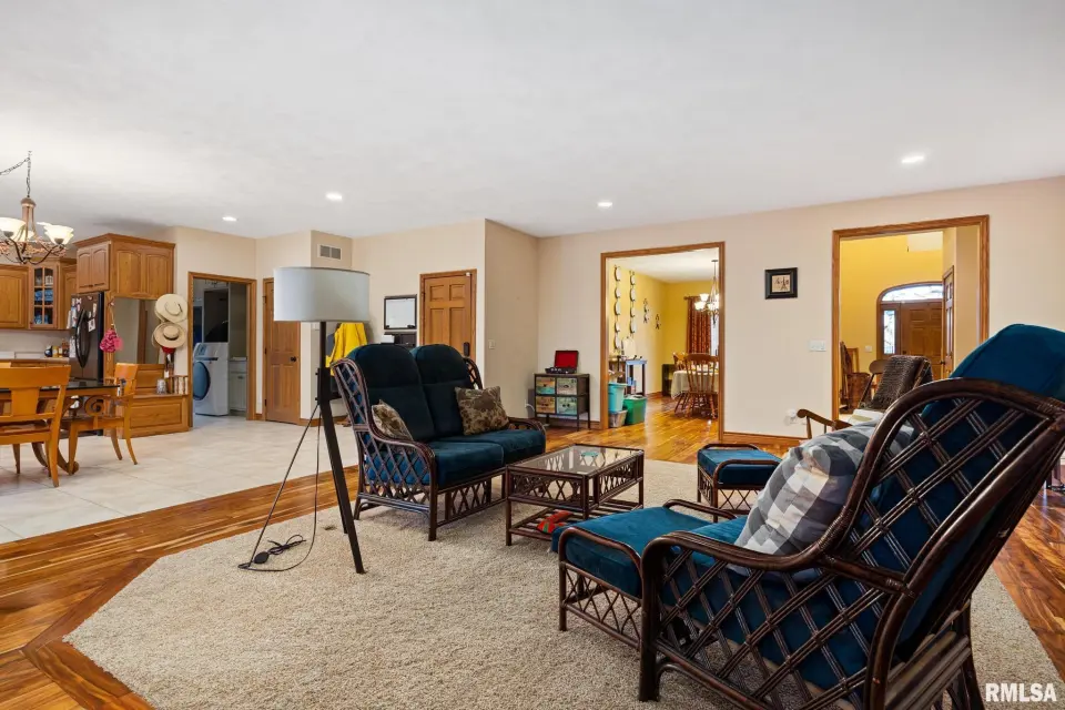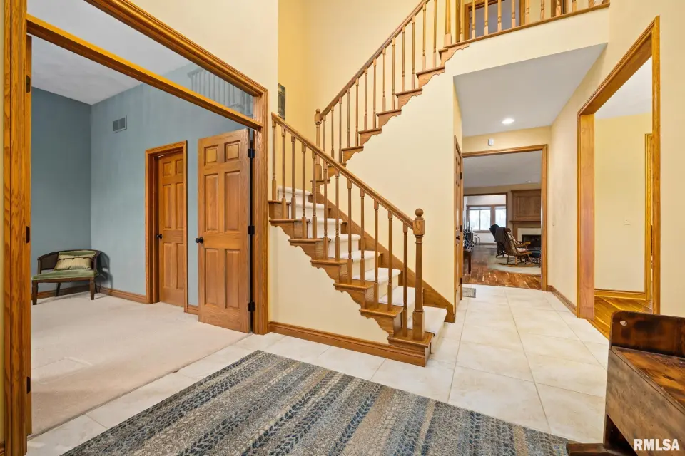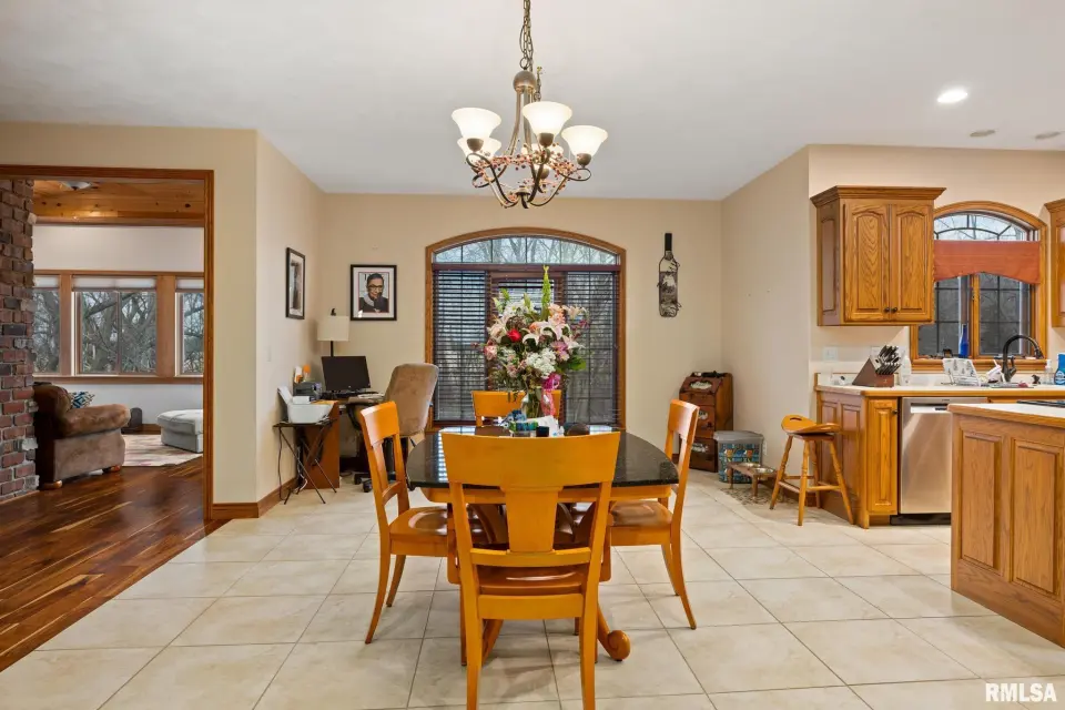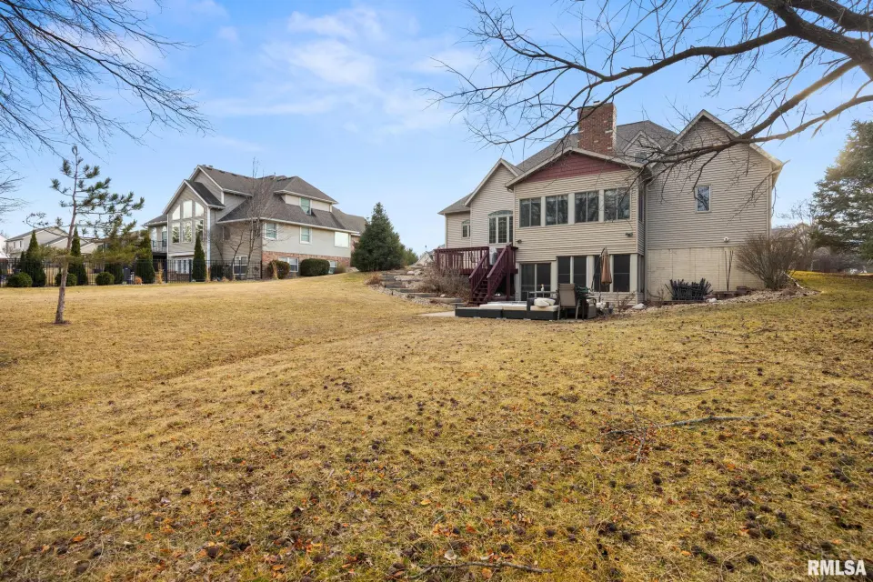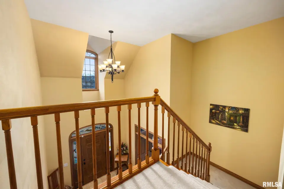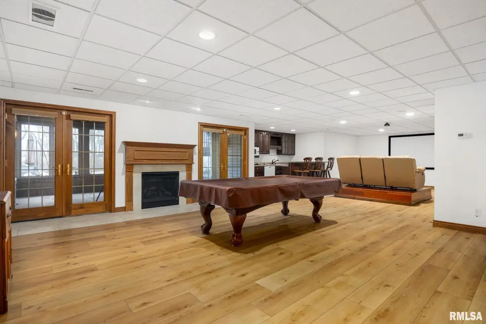 Enjoy 3 total fireplaces, including one in the expansive main floor primary suite with vaulted ceiling, walk-in closet, and spa-like bath with sauna, double sinks, and tiled walk-in shower. A Jack & Jill bath connects to a main floor bedroom/office. Upstairs are 2 bedrooms with another Jack & Jill bath and great closet space. The full finished basement includes a large possible 5th bedroom (no window), full bath, full bar with dishwasher, theater area, rec room, and 2 walkouts to a screened porch under the 4-Season room. Outside features a large patio, fire pit, and 3-stall garage. Spacious laundry/mudroom, and excellent storage throughout. A must-see home for entertaining and comfort! Furniture to stay in the home: basement entertainment center & pool table, office safe & bookcase, basement kitchen appliances stay as well. Updates include; Heat exchanger 2023, A/C unit 2019, and roof 2017, gas water heater 2016.